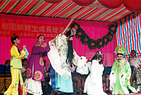秀朗國小六年二十七班組成的歌仔戲及絲竹樂團,五月七日在中和錦和公園「希望工程」義賣園遊會露臉後,又慨然接受慈濟委員的邀請,於北區教師聯誼會在竹山國小舉辦的「震動大愛重建『笑』園——師親生成長班」圓緣日這天,以絲竹樂曲及歌仔戲與竹山鎮小朋友及家長結緣。