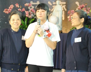 出生三天後,郭亞晴(中)就一直在保姆家生活、成長至今,就讀護理科的亞晴立志考取護理師,要幫助更多人。(攝影者:連瑞陽,地點:基隆共修處,日期:2015/10/31)