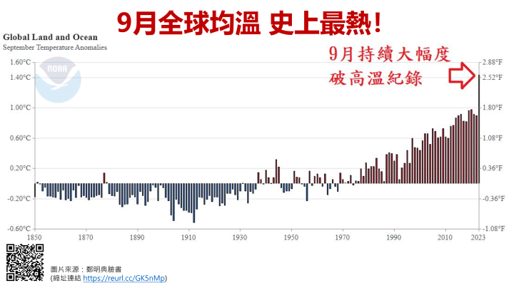 【壹蘋新聞網】2023.10.16. 史上最熱!9月「全球均溫破紀錄」 鄭明典驚:這樣增溫很不尋常