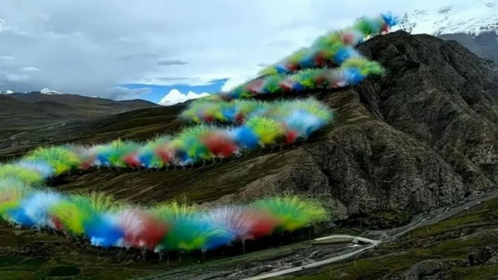 2025.09.27【3446】知名煙火爆破藝術家蔡國強和加拿大的戶外品牌始祖鳥合作,在西藏喜馬拉雅山脈舉辦〈升龍〉煙火秀