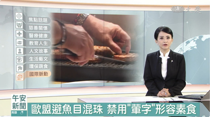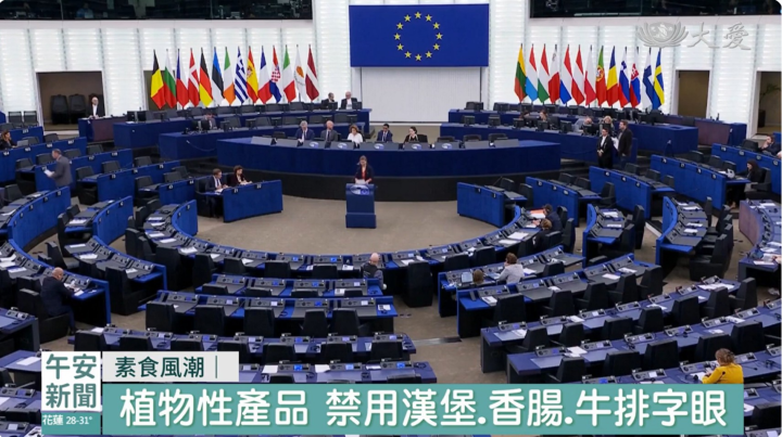 歐洲議會通過一項有爭議的提案,禁止以「漢堡」、「牛排」等肉類字眼,標示植物性食品。根據這項提案,「香腸」、「漢堡」等名稱,將僅限於真正含有肉類成分的葷食。隨著對動物福利與溫室氣體排放的關注提升,越來越多人選擇蔬食,歐洲畜牧業者認為,模仿肉類的植物蛋白產品,威脅了傳統產業,因此提出修正案。