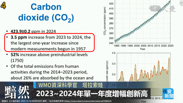 2025.10.23【3472】地球暖化是人類要面臨的共同課題,世界氣象組織警告,2024年大氣二氧化碳濃度增幅創新高