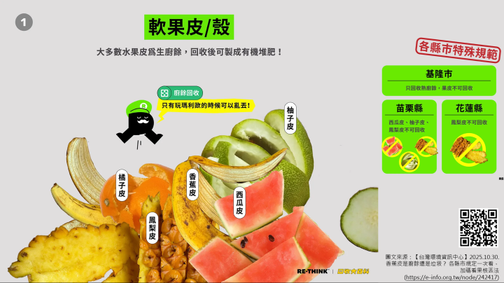🌏 【台灣環境資訊中心】2025.10.30. 香蕉皮是廚餘還是垃圾? 各縣市規定一次看,加碼看果核丟法