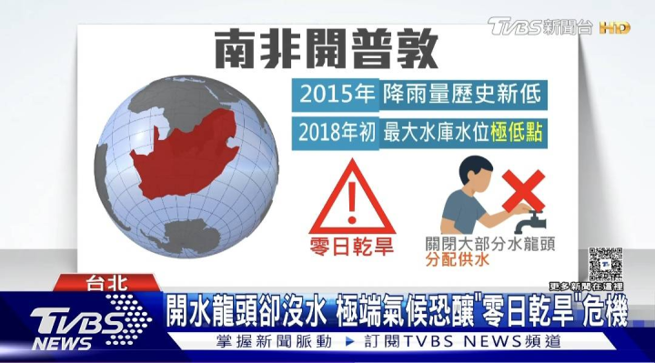 極端降雨或乾旱,都會影響日常,甚至出現「零日乾旱」名詞,打開水龍頭無水可用的困境,韓國一份研究點出,全球超過1/3的乾旱地區,可能在2020或2030年代,面臨持續性的的零日乾旱事件,因此,水資源如何循環利用,成為課題。