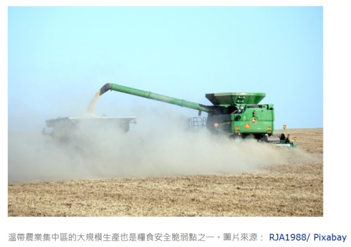 當氣候變遷帶來極端天氣變化的同時,農作物的收成量便進而受影響。除了產量可能下跌,作物也可能因為二氧化碳濃度上升而加速生長,讓單一農產的營養價值下降,已經惡化的糧食安全情況更加糟糕。