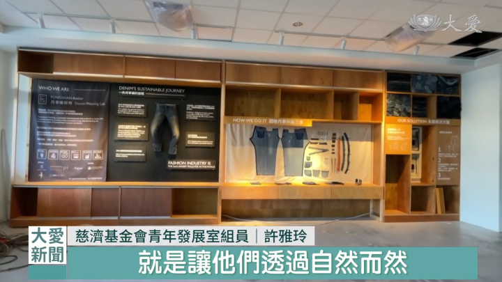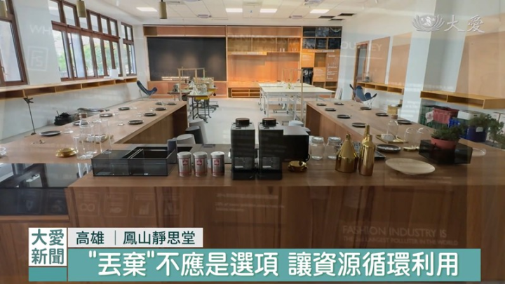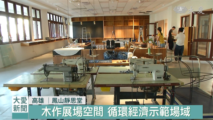 鳳山聯絡處和台灣設計研究院合作,規劃出循環經濟示範場域,從空間設計、木作到展場內容,都融入資源循環、永續理念,以2間教室打造出介於衛武營與未來的大型流行商場之間,融合藝術、環保與文化的友善場地。