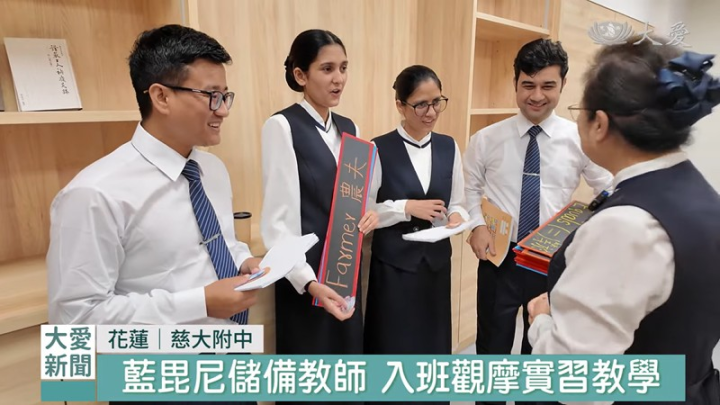 慈濟藍毘尼佛教學校,預計明年就要正式啟用,儲備教師團隊來到慈大附中進行實習觀摩,經過近一個月的備課,日前實際進入班級公開授課。面對不同的語言、環境與教學方式,教師們做足了準備,也換上正式制服,互相打氣。