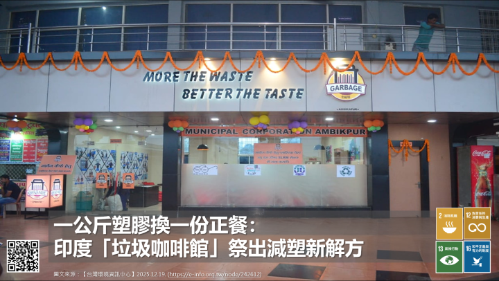 🌏 【台灣環境資訊中心】2025.12.19. 一公斤塑膠換一份正餐:印度「垃圾咖啡館」祭出減塑新解方