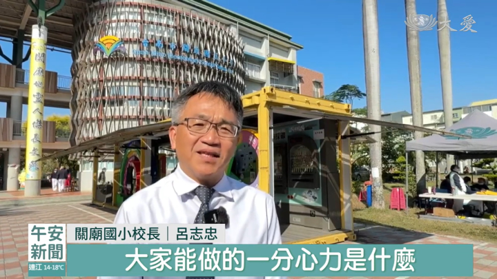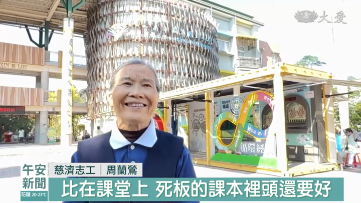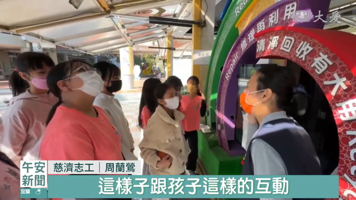 台南關廟國小,一名退休老師、同時也是慈濟志工「周蘭鶯」,接引行動環保教育車,開進校園,讓師生有機會透過闖關,用遊戲的方式,接觸更多環保理念。