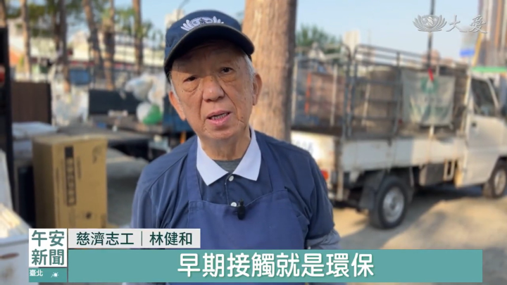 76歲志工林健和,年輕時留長髮四處遊玩,還兩度留級,後來考上郵局工作生活依舊沒有目標,所幸志工邀約下,投入環保回收也聆聽上人的法,他彷彿開竅一般,20多年來積極付出,他說是慈濟給予他生命價值,是慈濟豐富他的人生。