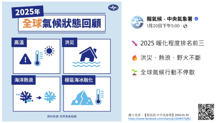 🌏【報氣候-中央氣象署 臉書專頁】2026.01.20.