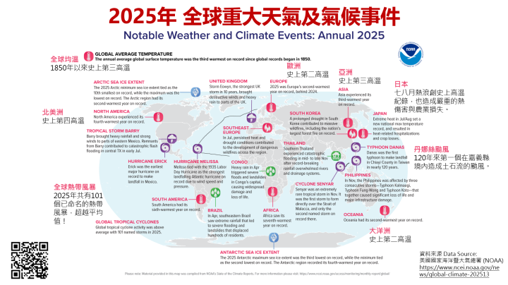 🌏【美國國家海洋暨大氣總署 (NOAA)】2025 finishes as third warmest globally and upper ocean heat content was record high