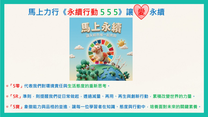 🐎《永續行動 5 5 5》🐎🐎《5零、5 R、5寶》🐎