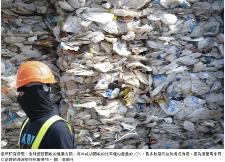1.全球塑膠產量達3.87億噸!回收率卻僅1成 多數仍被焚燒或掩埋