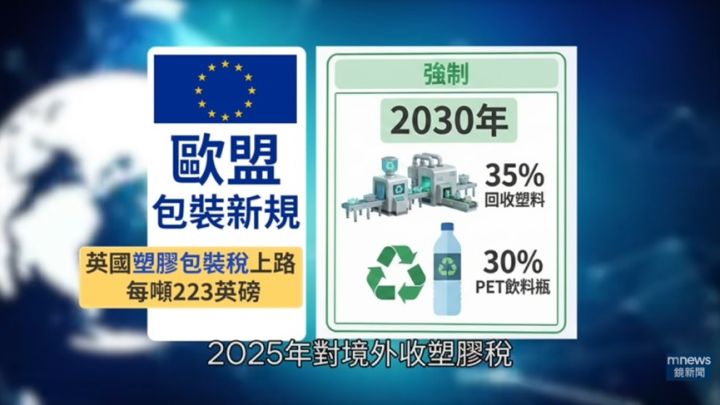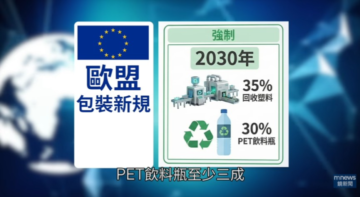 最新研究發現,全球塑膠回收每年成功回收的比率僅約產量的10%,且多數最終被焚燒或掩埋。這類石化材料無節制的使用,加劇全球暖化,也對生態系與人類健康造成不利影響。聯合國預告要「限塑」,從源頭減量,歐盟認為道德呼籲不夠, 2026 年已經有硬法規上路,未來塑膠包裝若不含「再生料」,就要課稅!2030 年再生料比例必須達到三成到三成五。台灣面板大廠-友達光電,逆勢而為,喊出台灣廠的塑膠包裝,2030年要達到「塑膠中和」,也就是正負相抵,用多少就回收多少。