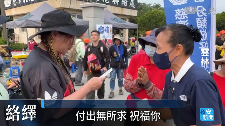 宗教界的盛事,苗栗白沙屯媽祖進香,今年報名的信眾人數突破46萬人,創下歷史新高。上午進香行程來到雲林北港,慈濟志工把握因緣,在北港聯絡處前推素也宣導環保,更準備了咖啡、點心跟信眾結緣。