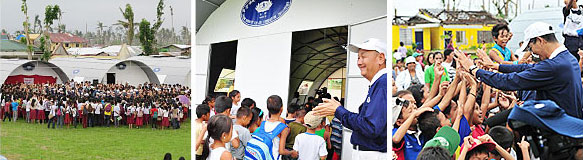 慈濟志工13日踏入重災區,以萊特省奧莫克市、獨魯萬市為救災重點,為災民供應熱食、義診、發放物資與祝福金,以及搭建簡易教室,並於獨魯萬市啟動「以工代賑」,帶動災民打掃家園,十九天共逾二十八萬人次災民參加,讓瀕臨棄城的災區有了生機。