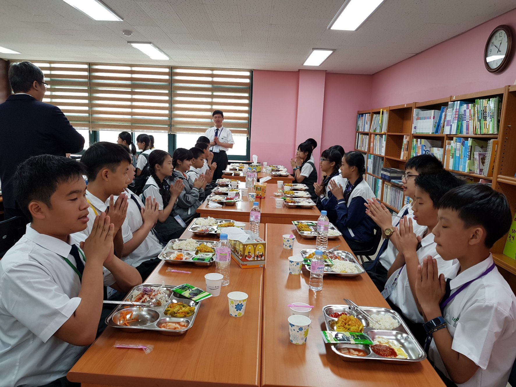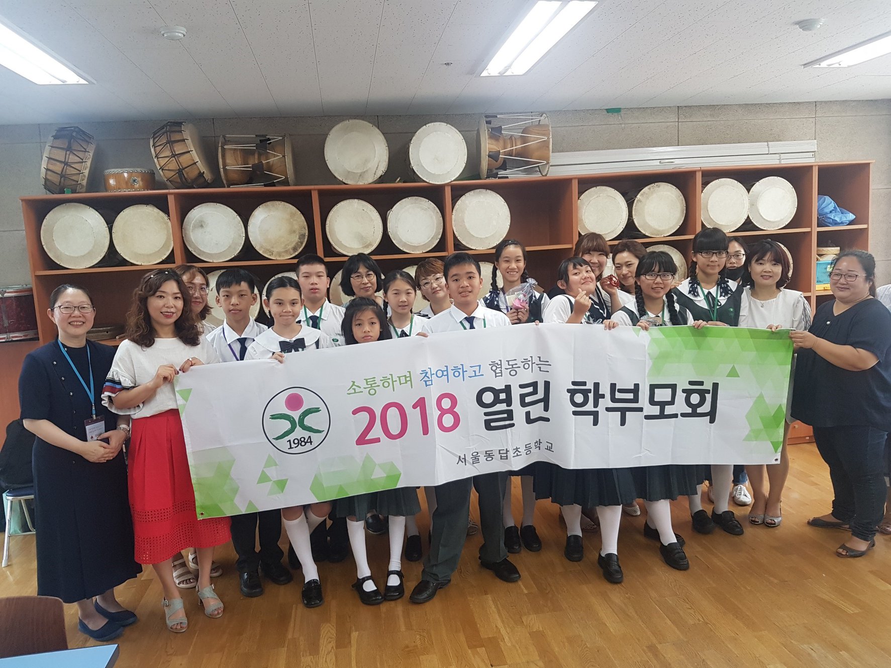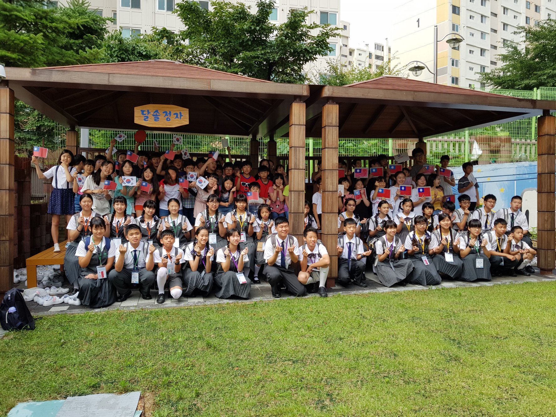 接下來的歡迎式,主任致詞先恭喜韓國在世界杯足球賽擊敗了德國,友校的師生馬上露出了歡樂的笑容,拉近了彼此的距離。慈中將教室移到首爾,移到東踏國小。因此,我們也希望東踏國小也能夠將教室移到花蓮,移到慈大附中來,東踏國小師生預計在11月一起來參加慈中校慶國際運動會,大展身手,我們竭誠歡迎。緊接著,在東踏國小吉他表演後,就是慈中學生的「校歌」與「彩色的翅膀」表演,生動的手語表演獲得滿堂彩,伴隨者熱烈的掌聲,台下的韓生也隨者節奏比著手語。完美的演出背後一定有一位很好的師長,這位師長就是懿勤媽媽,他花了好幾個小時在中午、假日與晚上指導學生手語,非常感恩她的付出。