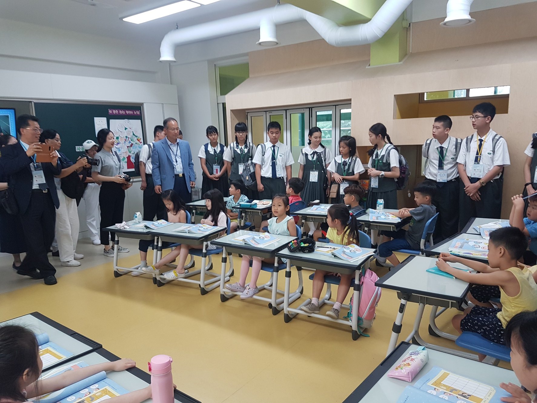 歡迎式後就是入班上課,總共有「電影製作體驗」、「韓服洋娃娃製作」、「機器人操作與VR體驗」,這三門課都是校訂特色課程,高年級的校訂課程是電影教學,東踏國小是韓國唯一以電影為特色教學的學校,緣由是因為此校地以前是一個電影製片廠,故以歷史的沒落發展電影特色教學。