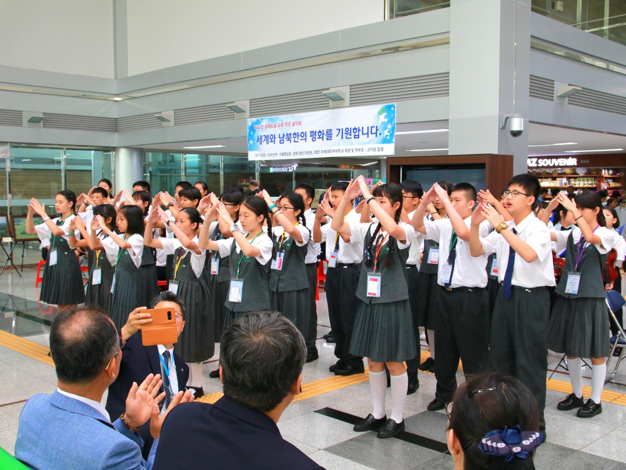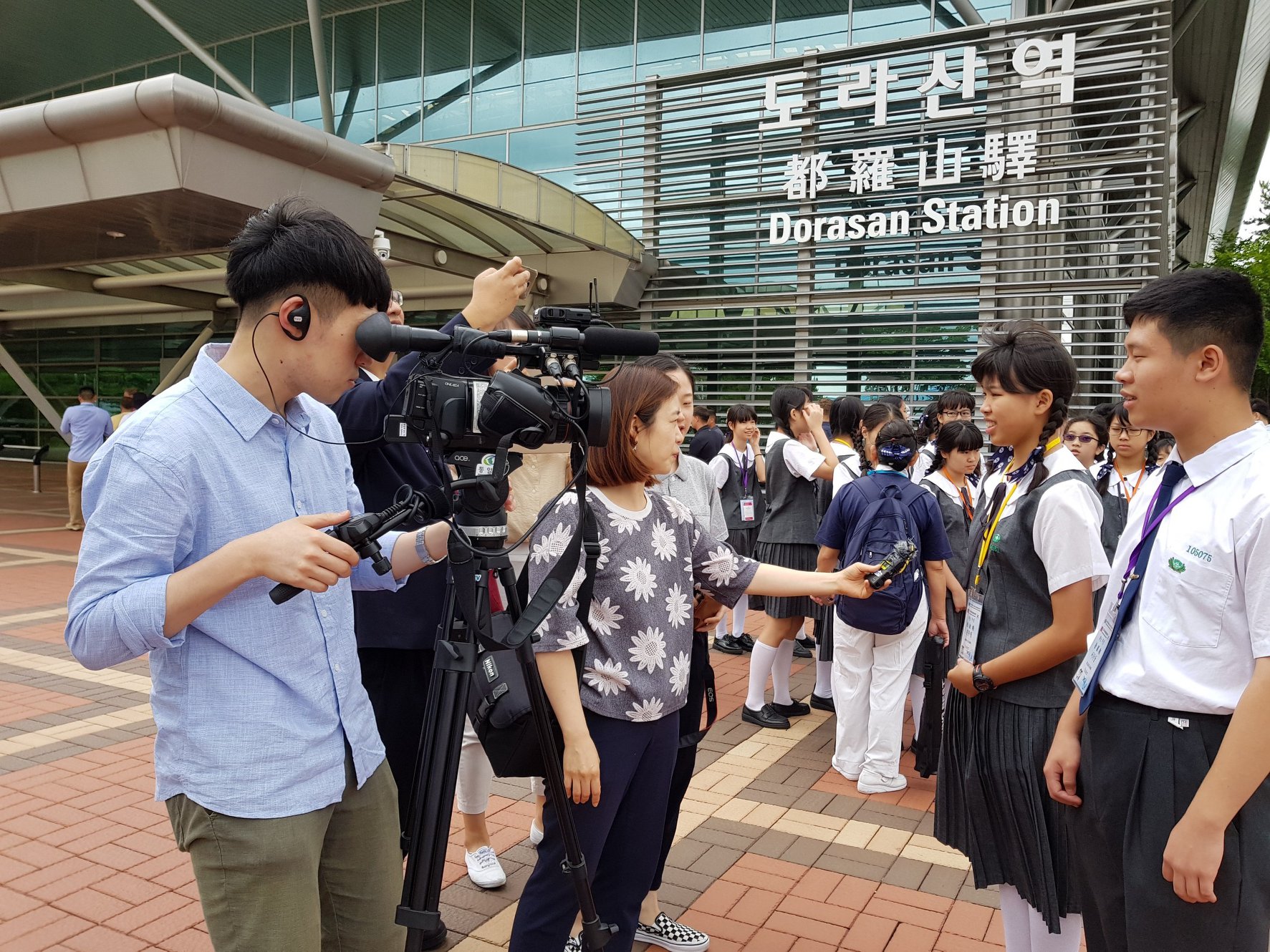 慈大附中韓國國際修學團, 在南韓北韓 38度邊境以上的都羅山車站,與姊妹校東踏、慈川一起為兩韓和平祈福手語音樂會,登上韓國電視台報導。 請大家也一起為兩韓的和平祈禱。