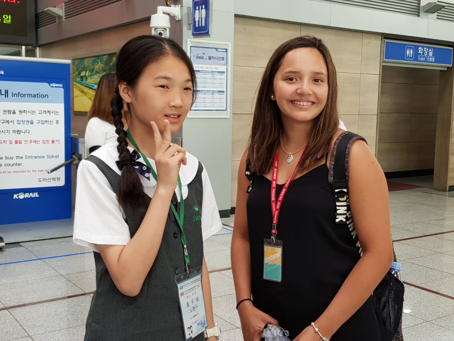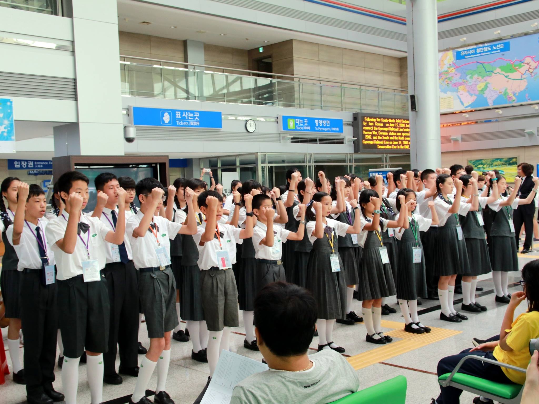 第三日進入此行最大重點之「學校交流」與「主題教學」,DMZ「南北韓非武裝地帶」主題教學與音樂手語表演,讓慈中、東踏與慈川三校一起在都羅山站為南北韓和平祈福。以下是本日行程內容,歡迎各位一起進入教學現場