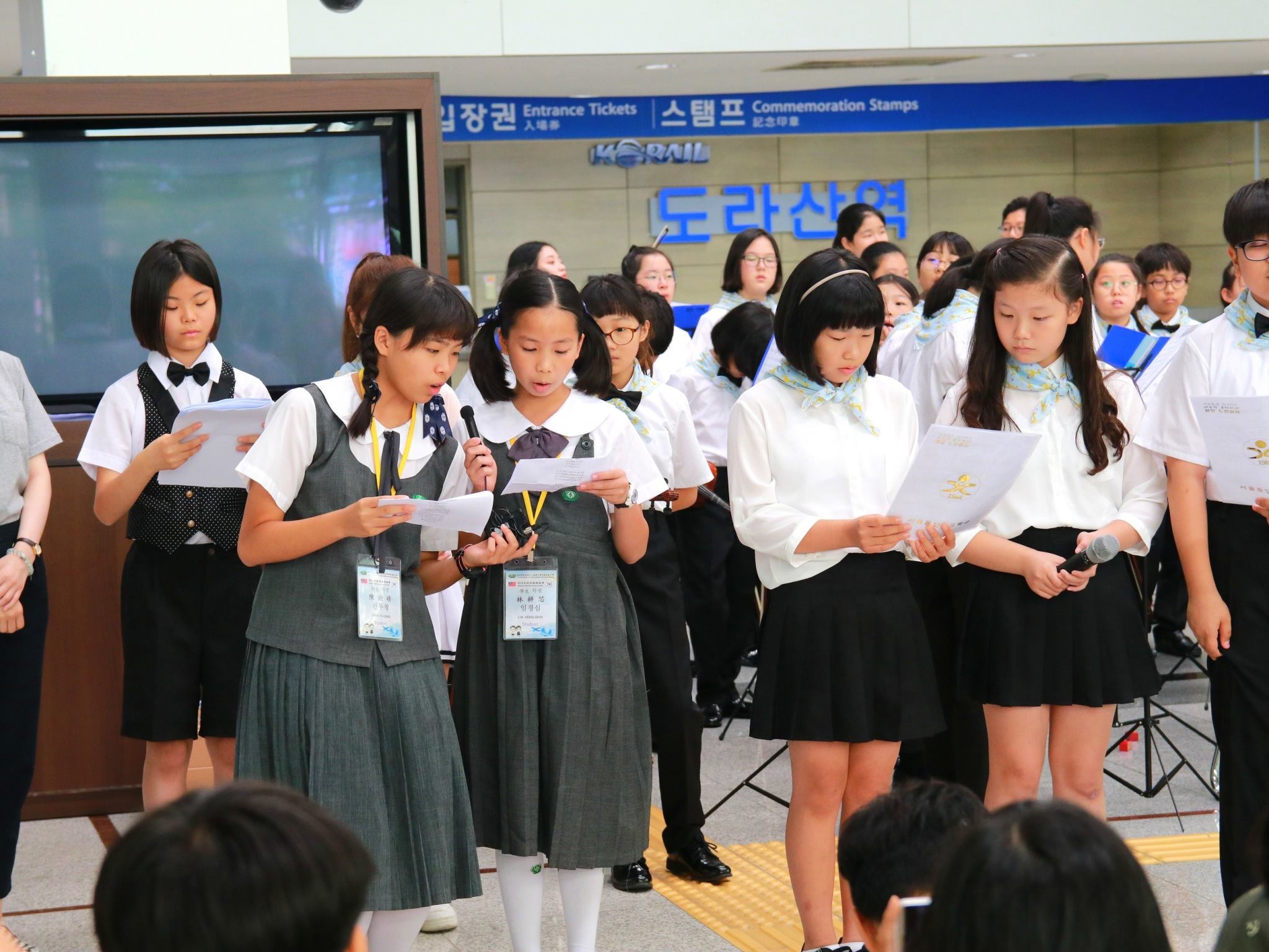 都羅山站離北韓只有兩公里的一個站,也是南韓的最後一站,前往北韓的第一個站,雖然這裡的乘客並沒有乘客,但是我們每年都會有6萬多的觀光客來這裡參訪,2002年2月20日美國總統布希訪問這裡,這引起了世界人的注目。都羅山站是在南方限界線上的南韓最北端站,所以如果未來南北韓統一,京義線鐵道通了以後,不僅可以去北韓,更可以去中國、俄羅斯。所以都羅山站是標誌朝鮮半島分斷的場所,也是南北交流的關門。我們在這裡以歌聲及手語表演為世界祈福,希望世界和平。