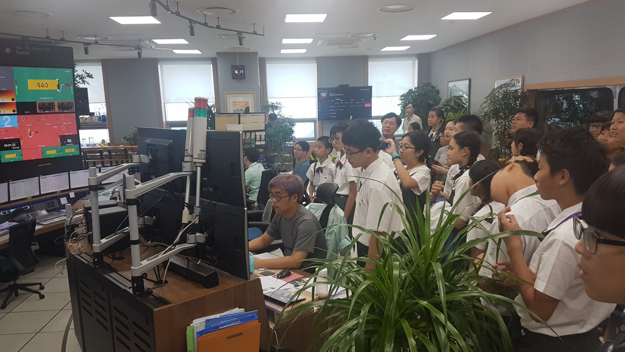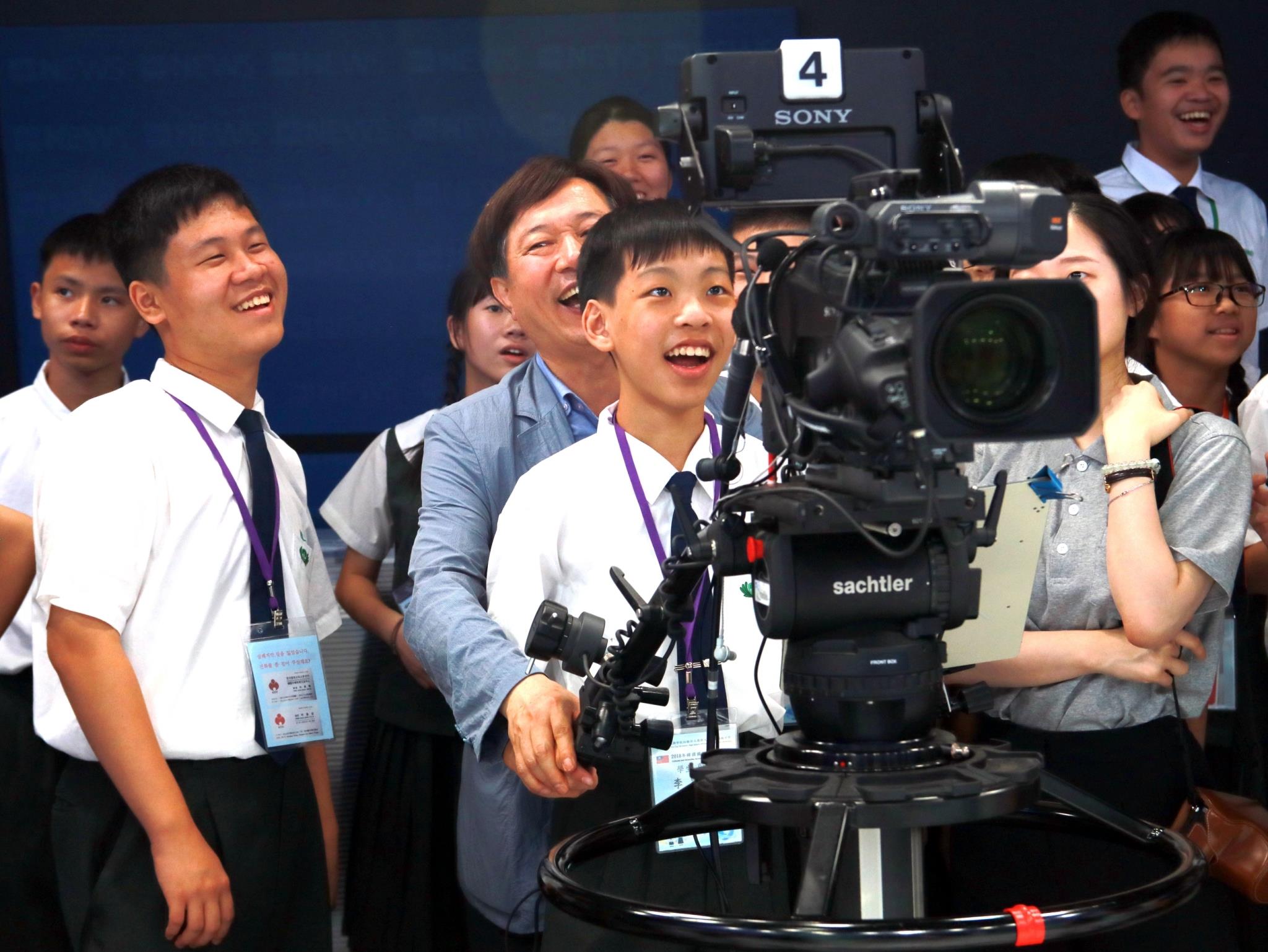 「EBS」是大韓民國國營教育電視台兼廣播電台,總部位於首爾特別市江南區,2014年11月25日,韓國教育廣播公社與大愛電視締結姊妹台。在電視台參訪行程,從攝影棚內的舞台設計,到節目的規劃和製作流程。國一善解周楷倫說原本以為在下午的參訪會很累,以為很無聊,但是參訪的部長很熱情的陪伴我們,細心的為我們解說,不時的設計一些小遊戲讓我們提振精神,在這裡除了學習不少的電視台知識以外,也度過了一個愉快的下午。