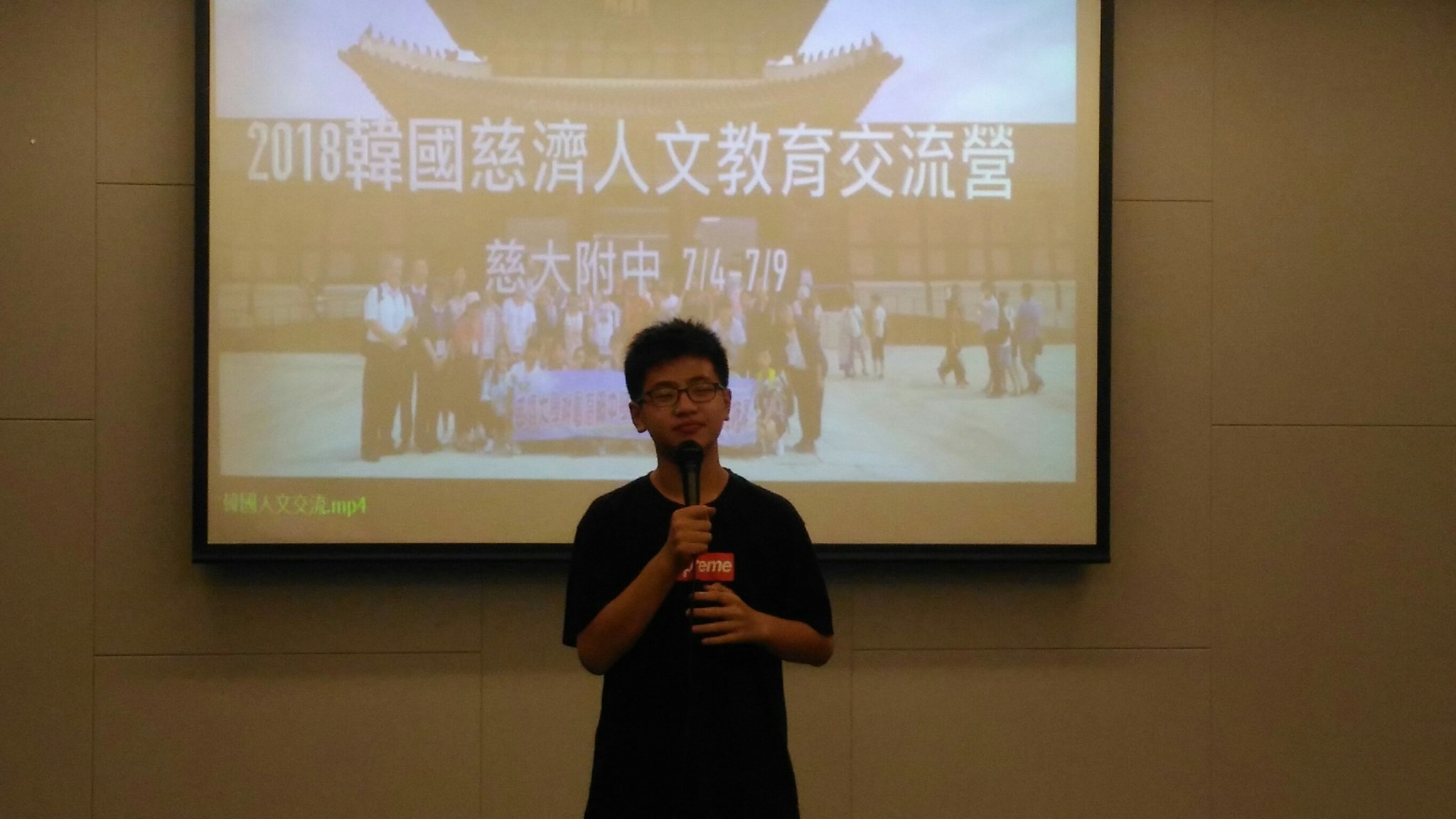 我這次會參加韓國國際交流的原因,因為我除了想要看看異國文化以外,我也想要了解韓國的歷史,這次我印象最深刻的一天是我們到DMZ的那一天,那天我們到都羅山站去辦了一個祈福音樂會,我們希望世界能和平,而且我們表演的時候與東踏國小及慈川國小一起演出時,有弦樂團的表演加上我們的手語音樂表演,讓韓國都注意到這件事情。我也看到了一個火車頭被子彈打成千瘡百孔的樣子,很可怕!很多人在這次我很感謝彥芬老師的照顧,我今天早上身體有點不舒服,他留下來陪伴我,照顧我,謝謝大家。