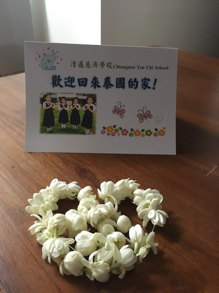 抵達學校學伴們早已排隊等候,然後送上這一串美麗的茉莉花