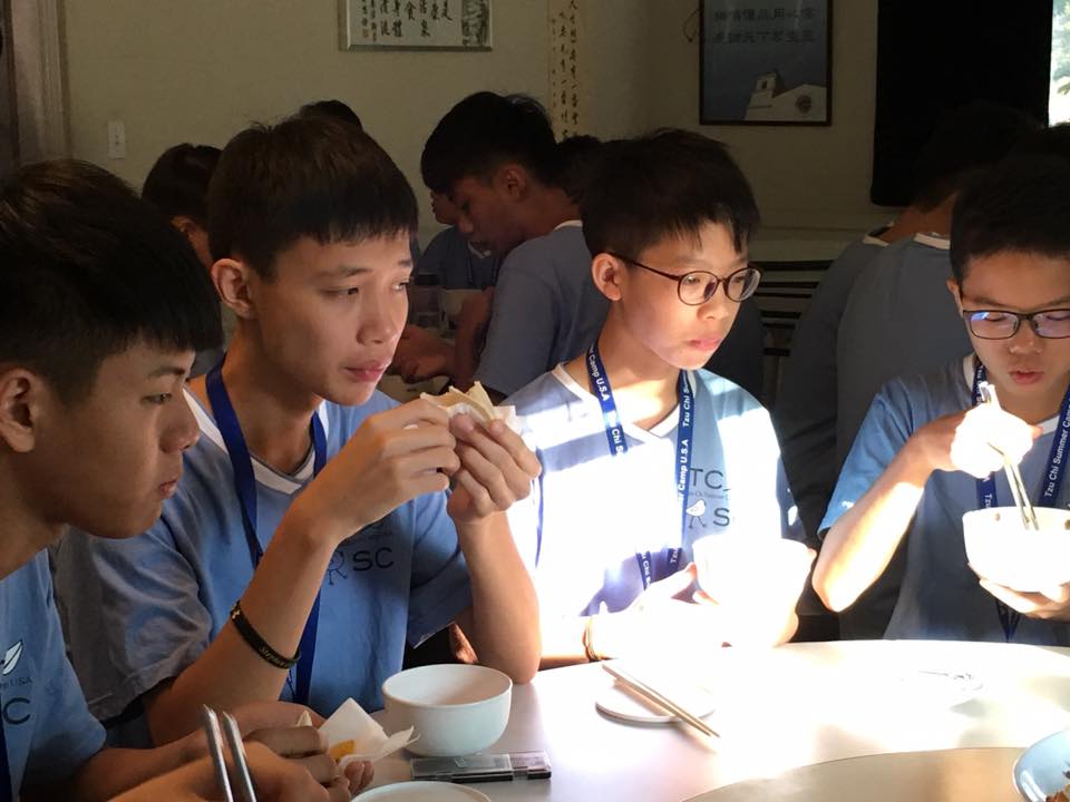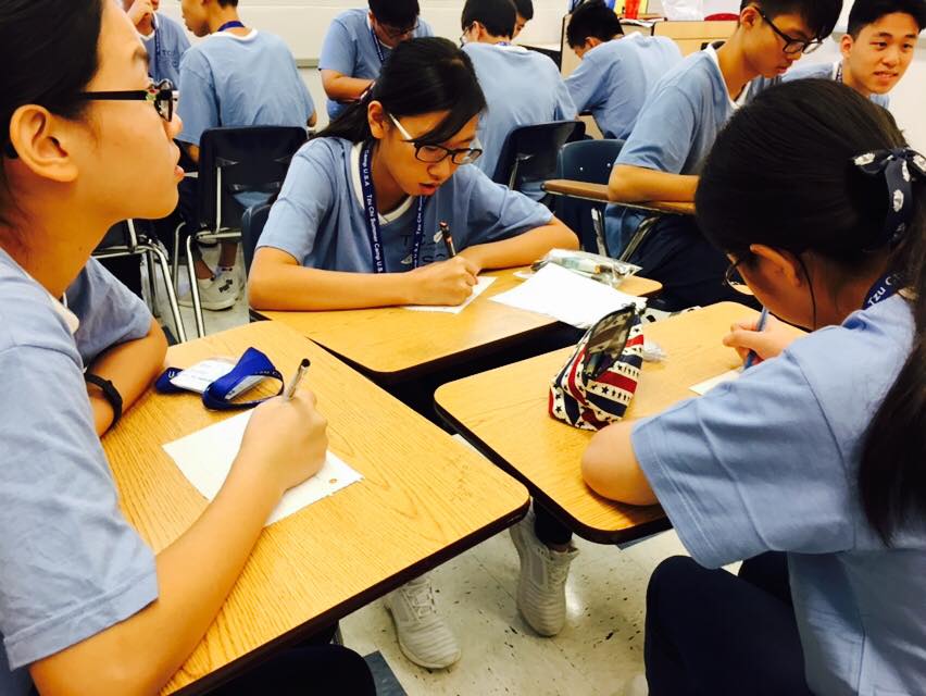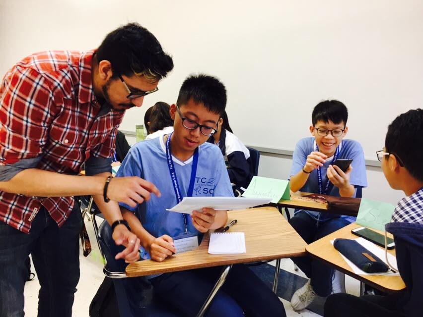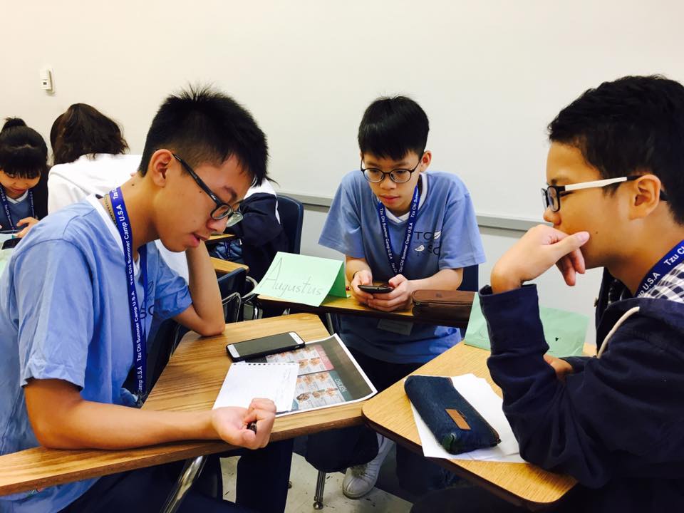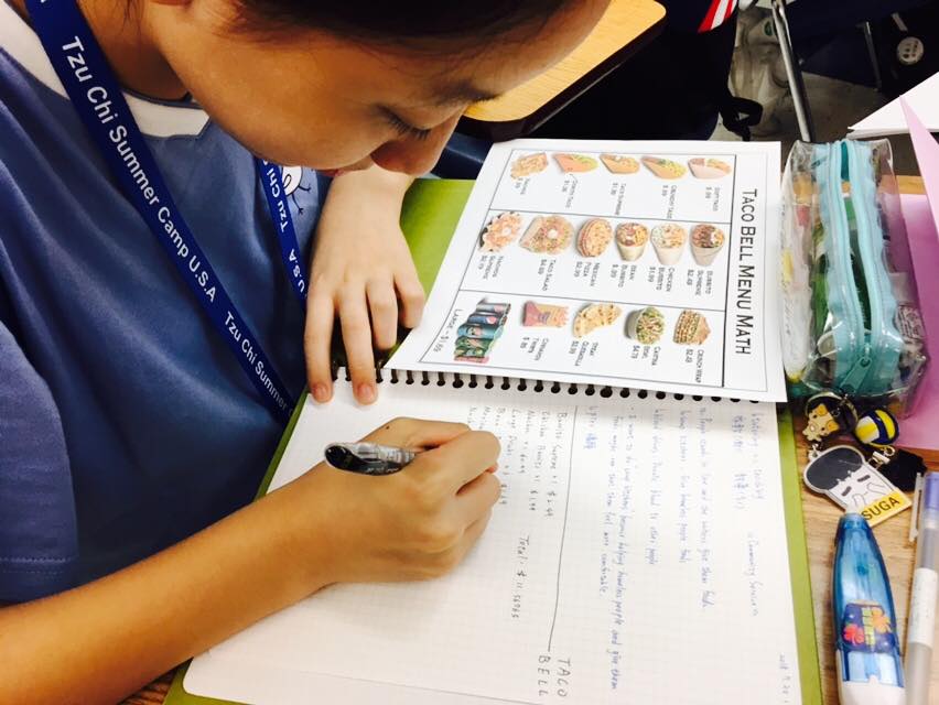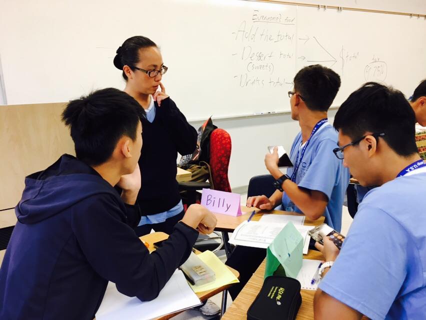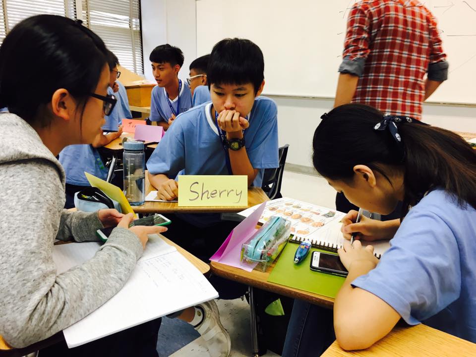 9點開始了期待的英文課程,同學發現在課程中,兩位老師設計的教材皆預告且環扣著本次營隊接下來的行程,包含從志工服務到加州著名景點,還有實際點餐教學和餐點計稅及給小費的方式,全都含括其中。