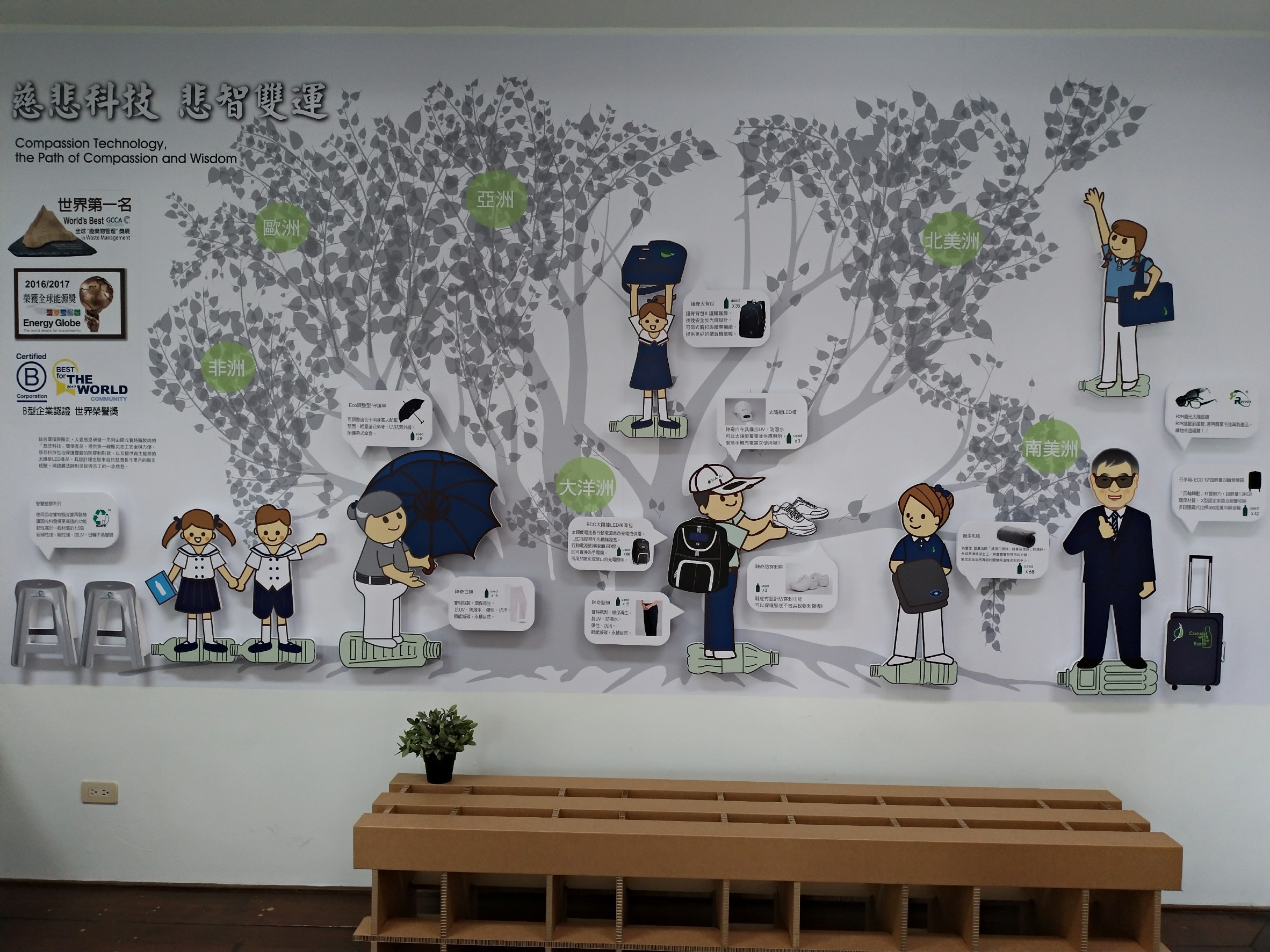 大愛環保科技館正式在慈濟大學附中國小部成立,也是慈濟四所校園裡的第一所,讓孩子們了解寶特瓶如何變廢為寶,重生成為救災設備還有衣物。