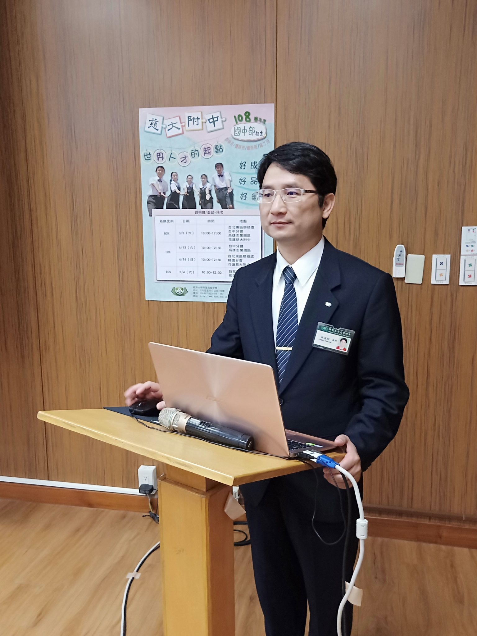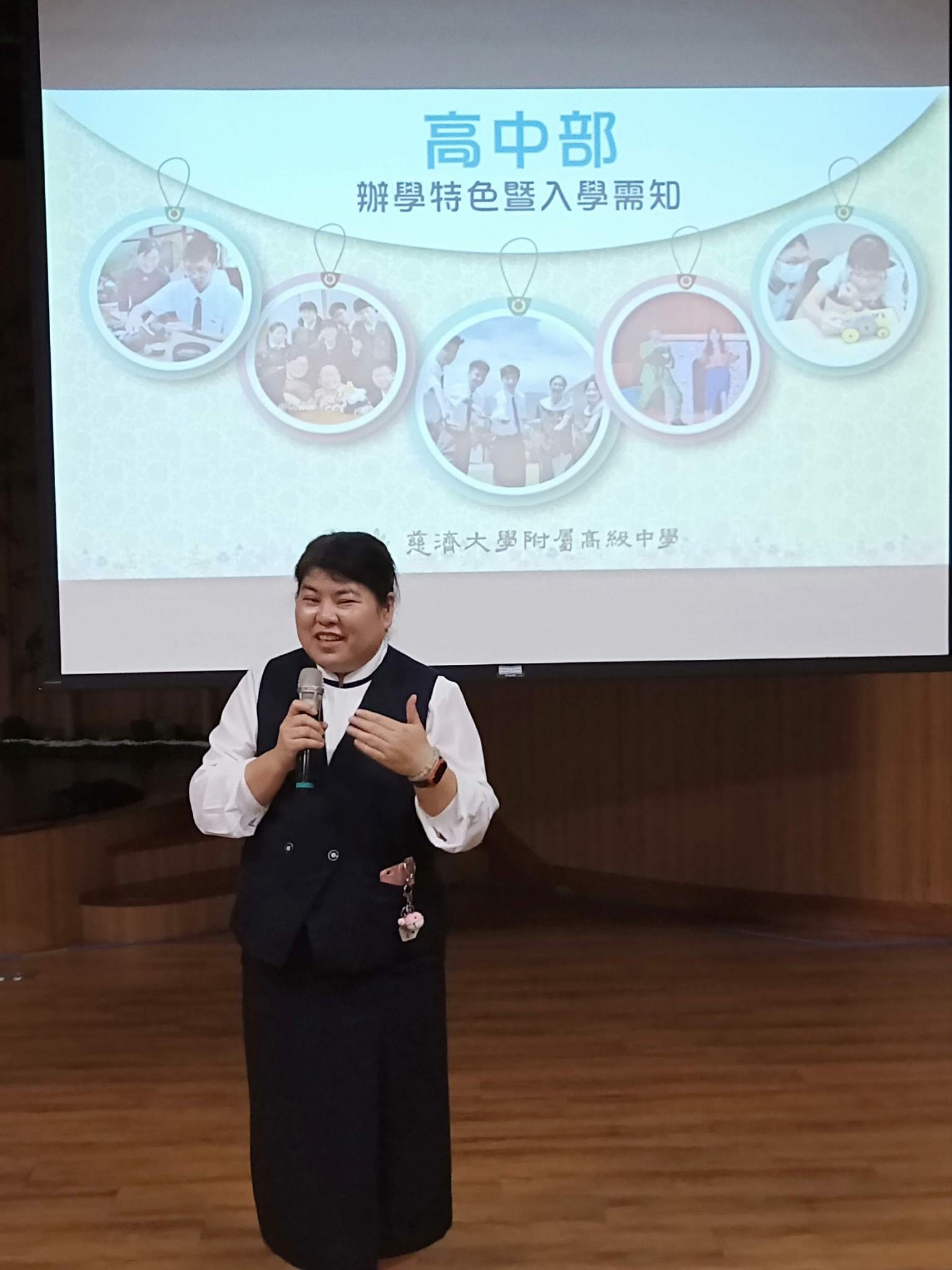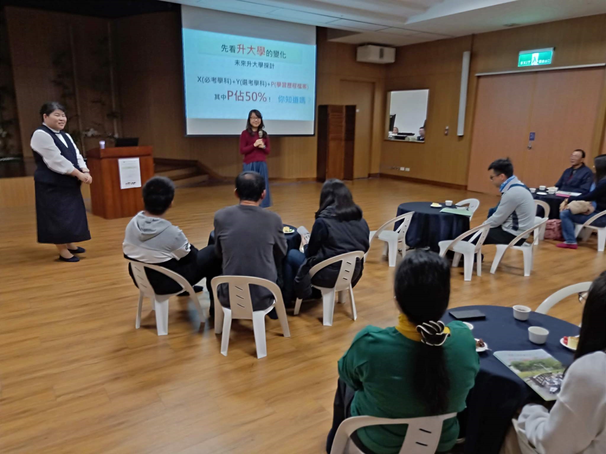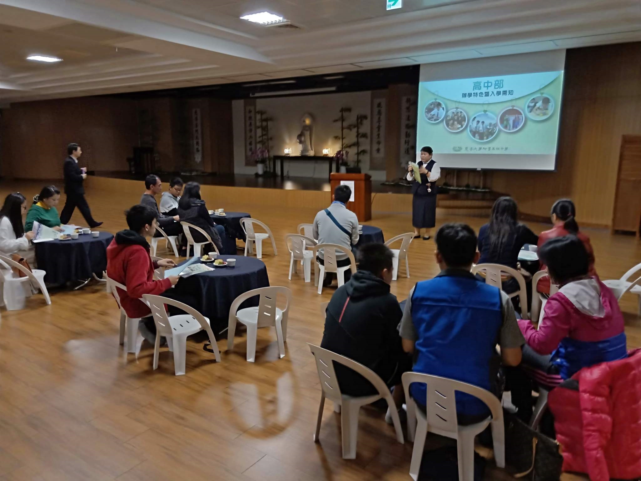 高中部說明會,原則是國中畢業後,如何填寫志願,選填他區學校之注意事項,故說明會半天,報名6位全到,師姊們依然真誠接待,說明會也來了一位學姊,現就讀台中中山醫學院,分享在慈中的學習情形,加深參加者的信心,說明會11:40圓滿結束。