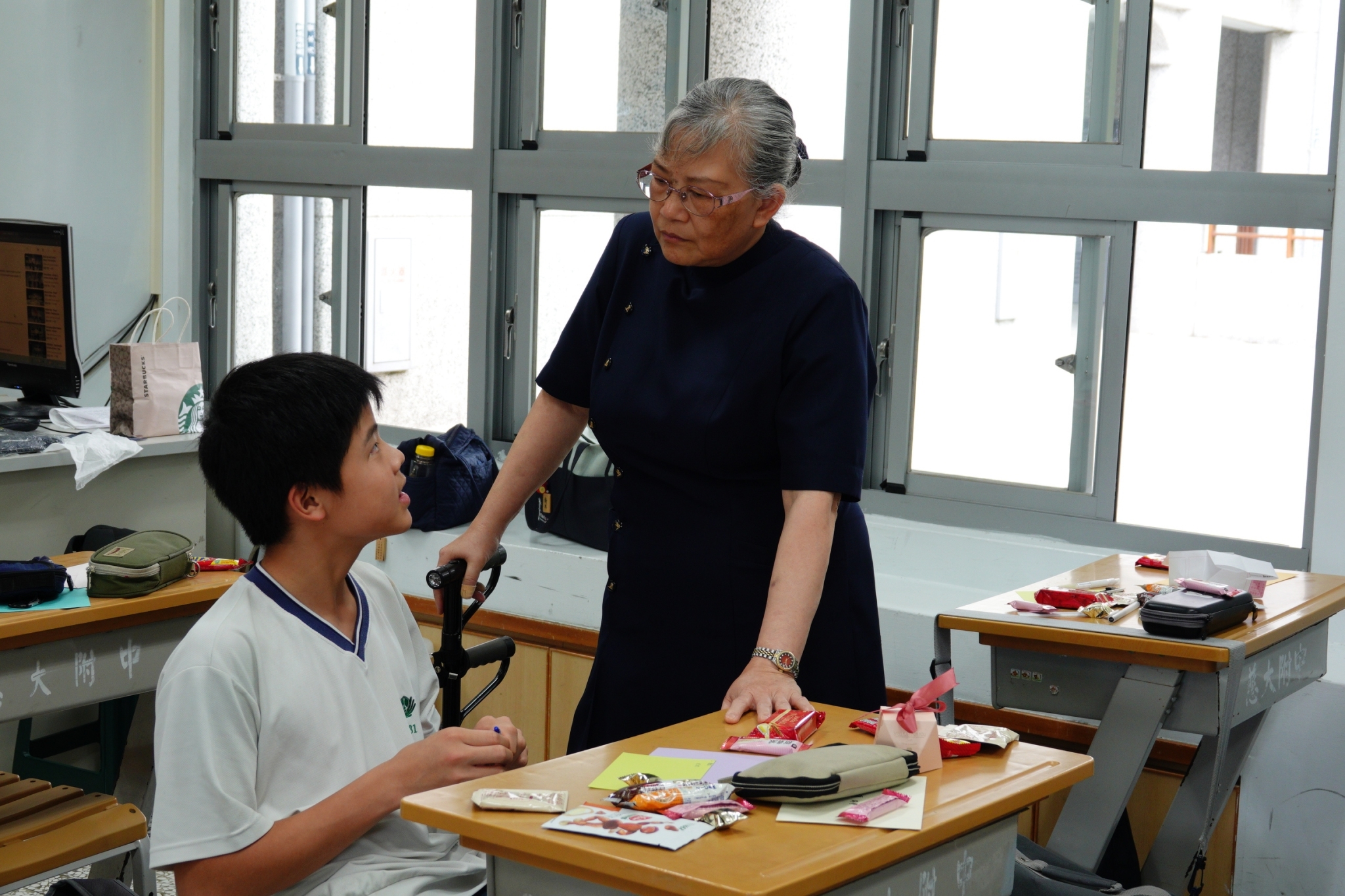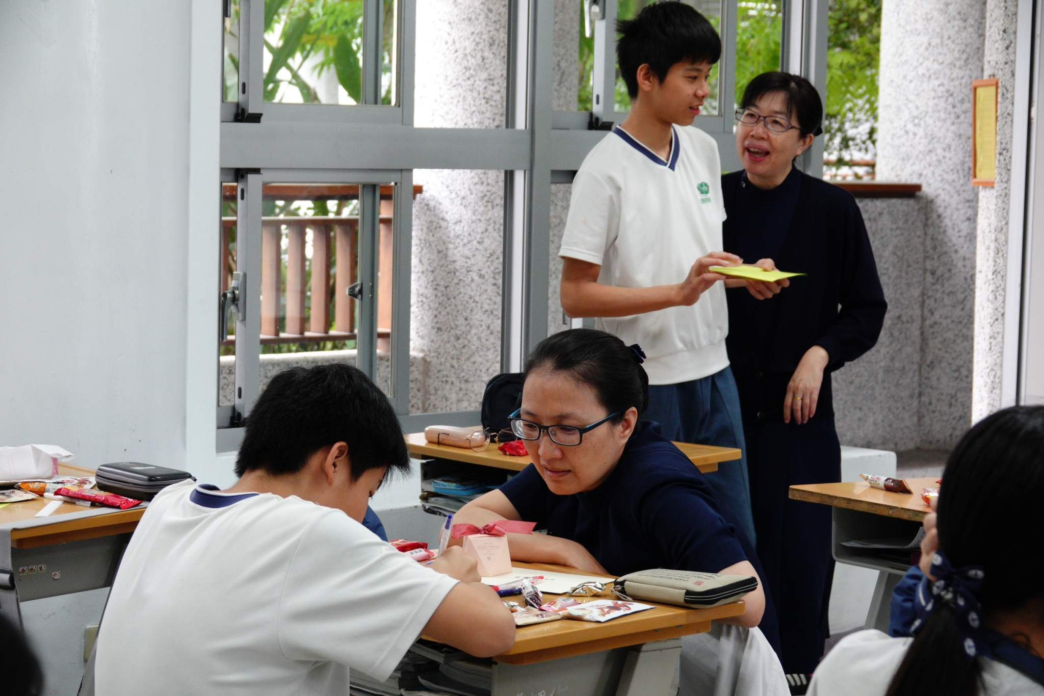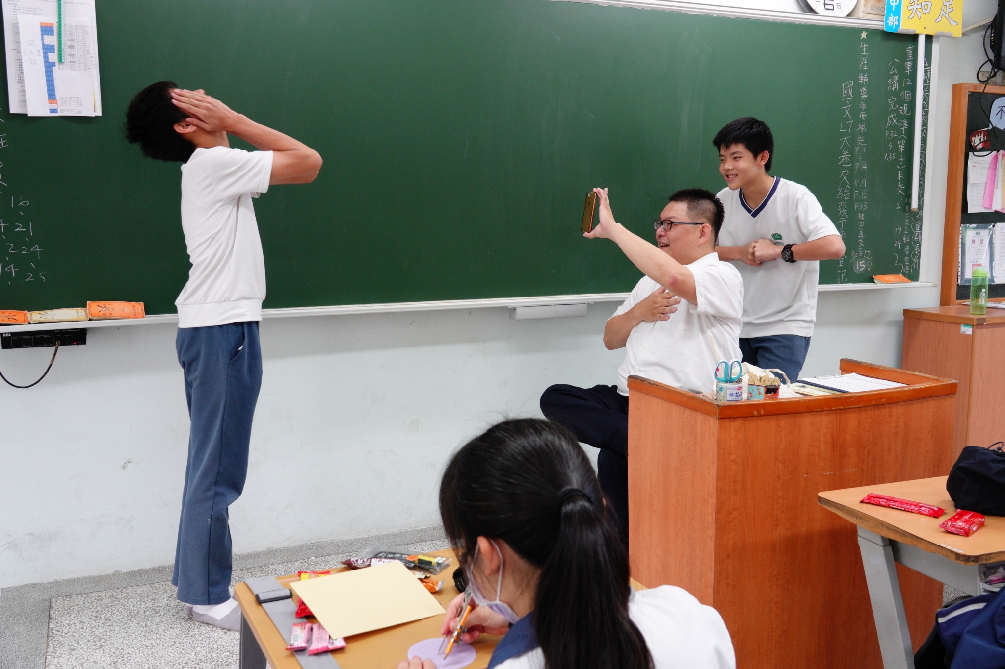 班導師禮晏老師,用手機錄下孩子對母親的感言