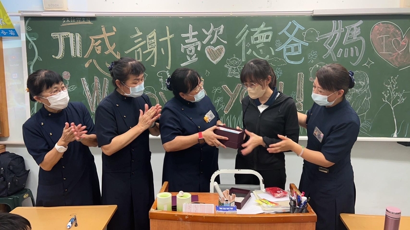 慈懿爸媽們帶著歡愉心來到慈中學期最後一次慈懿日,孩子們獻上對慈懿爸媽的感恩與祝福,慈懿爸媽也送上應景的福棕香包和孩子們結緣,慈懿爸媽準備了活瓷杯,敬致六月壽星班導沛吟老師,最後大家在快樂的氣氛中互道感恩,期待下學期再相會。