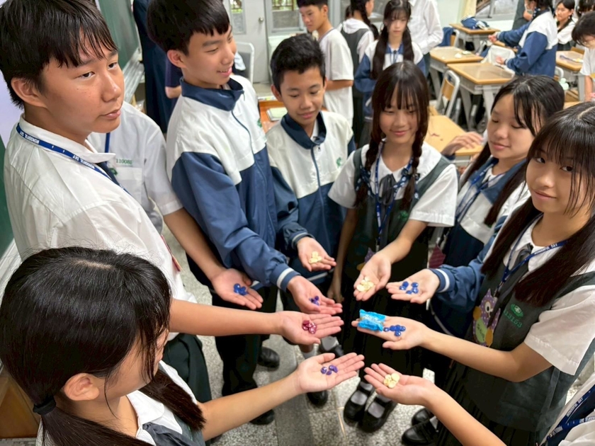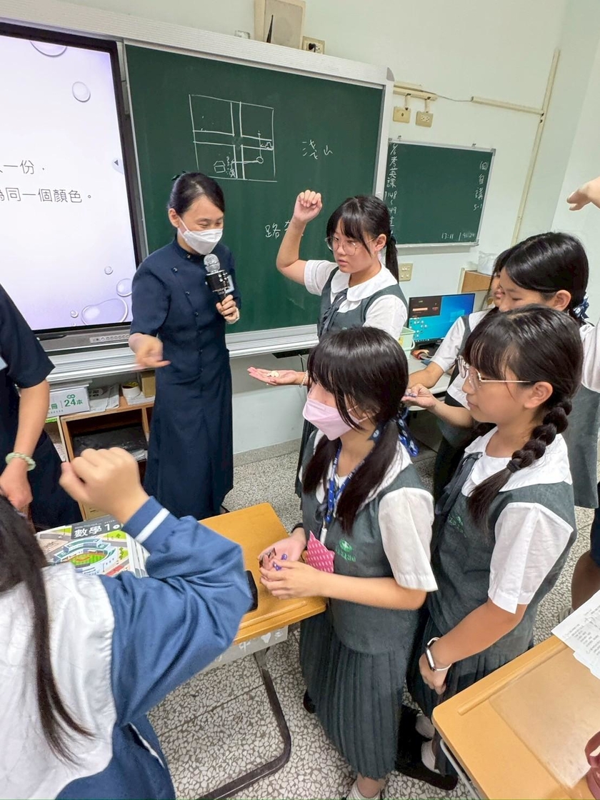 同學們很老實,有的同學在開始之前就已經先跟周遭的同學講好要互換、也有同學很可愛的說他就是五個鈕扣放在手上,讓有需要的同學自己換,最後自己的也是同一種顏色了!但也是在一陣歡樂、吵鬧聲度過了!
