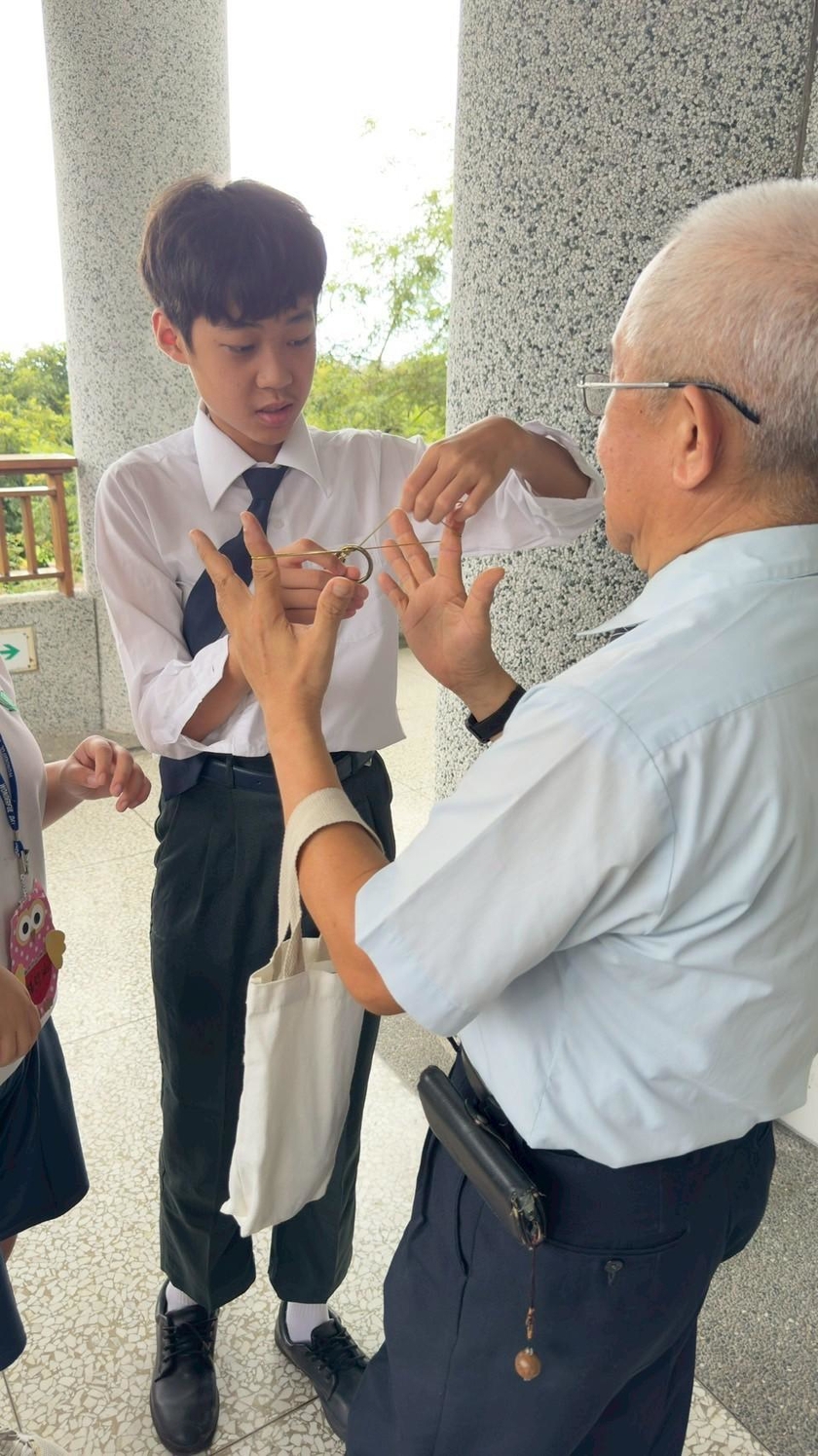 相片2:雅純師姊帶動的鈕扣交換小遊戲,同學紛紛跑來前面展示已經換完成的五顆鈕扣。