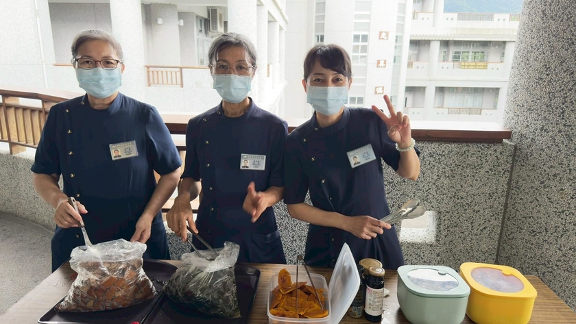 相片9:來自屏東的懿德媽媽,很用心的製作拿手滷味,還有自家烘的芒果乾來與同學們分享,一份媽媽心、慈濟情。