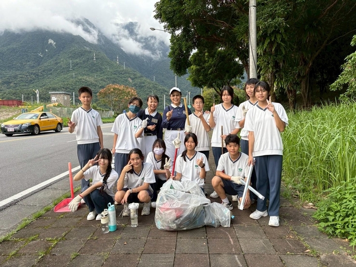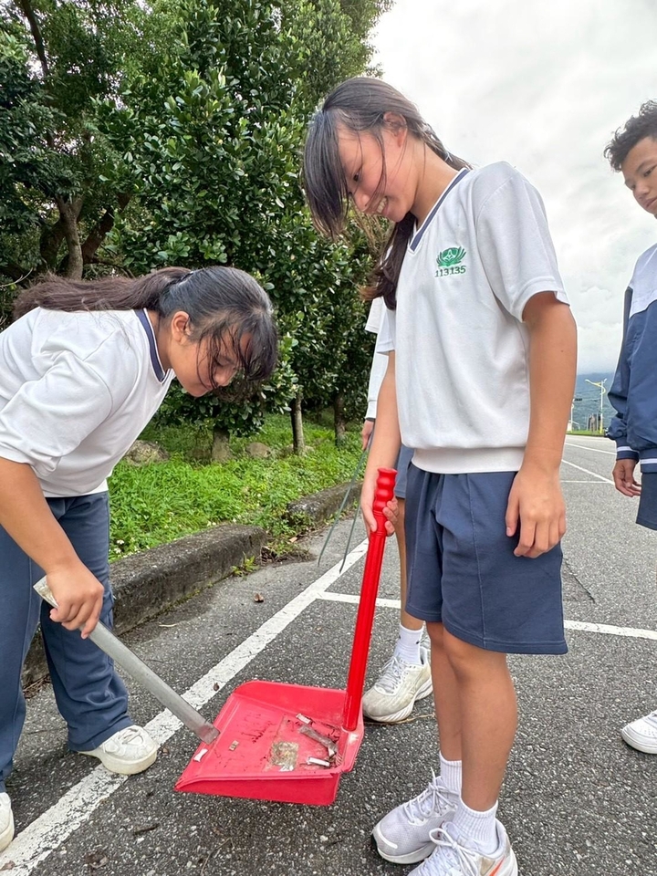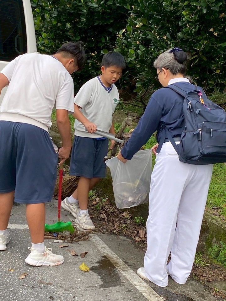 回程時大家看到有一個區域特別骯髒垃圾特別多,麗柚媽媽的志工精神便詢問是否可以一起來把它清理乾淨,大家沒有第二句話便動了起來,令人感動;這是我們慈中的孩子。