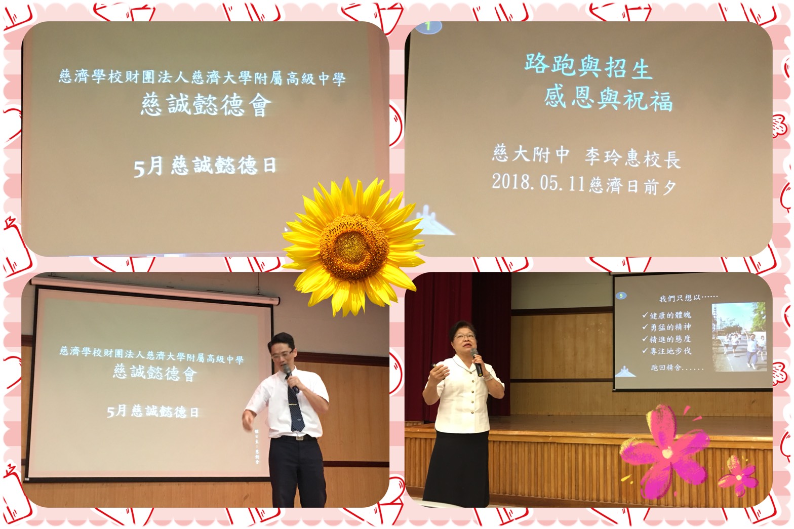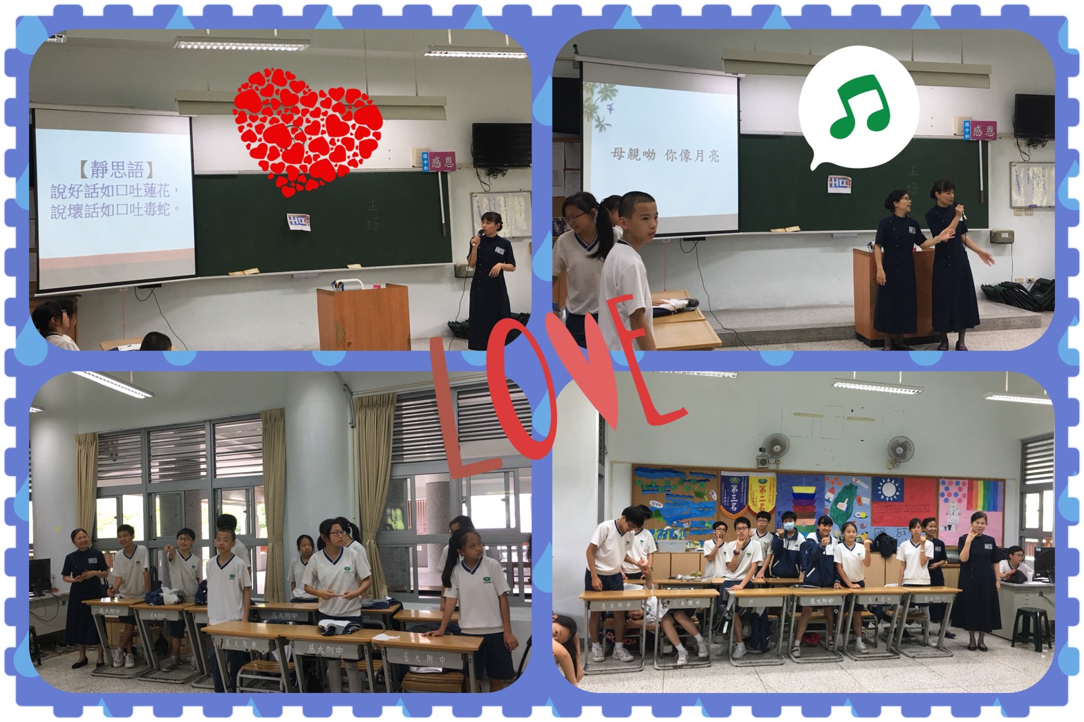 這次慈懿日慈懿會邀請輔導室徐振家主任示範精彩活潑的團康活動,讓爸爸媽媽們學習良多,笑聲滿滿,緊接著李校長「路跑與招生感恩與祝福」感性的分享內容讓我們感動滿滿。上完精彩的課程,接著下午一點半到三點,則是班級教案課程分享與各家族家聚的時間,到了班上帶著孩子們互動此次的教案課程並分享著我們精心準備的點心,由於這星期適逢母親節,因應這個重要的節日教孩子們比手語「有妳的地方是天堂」,讓孩子們體驗媽媽的辛勞,另外班上孩子住宿生全員參加星期日在靜思堂舉辦的浴佛活動,在這個殊勝因緣三節合一的日子裡讓孩子們親身體驗是最好的示範。