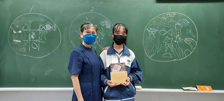 這個月壽星是郡瑜同學,春來媽媽贈送生日禮物及生日卡,大家一起唱生日快樂歌,說祝福的話,勉勵同學要努力為自己的人生找到方法,給自己信心。