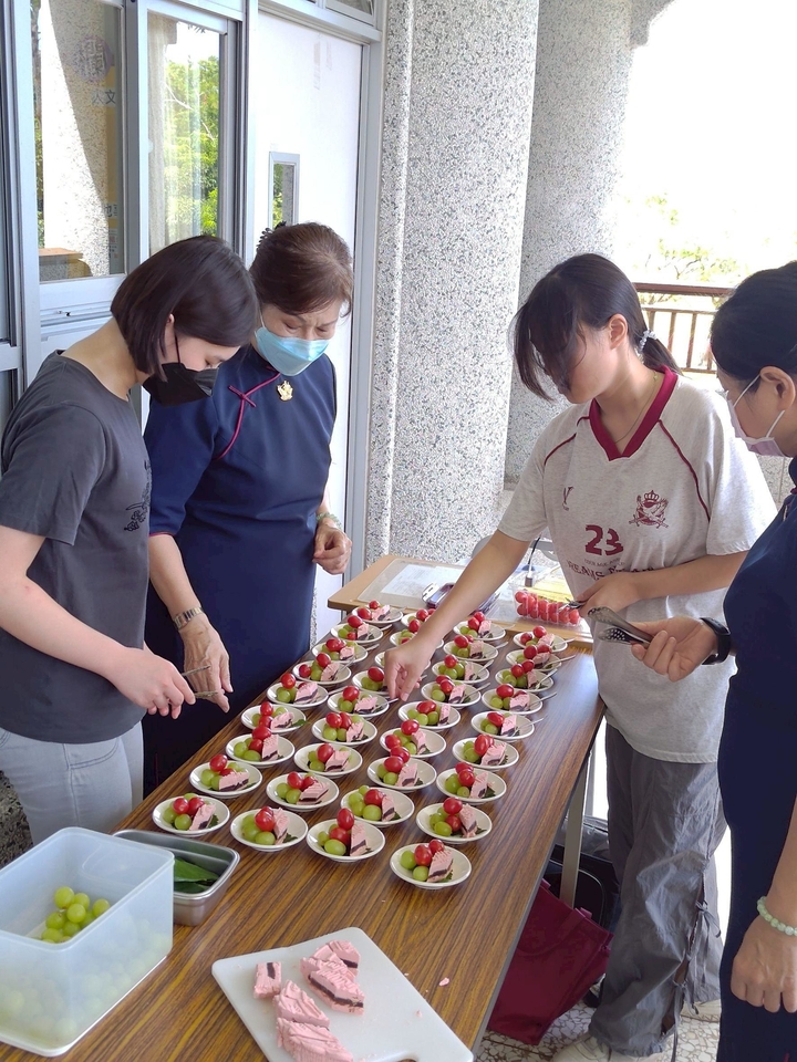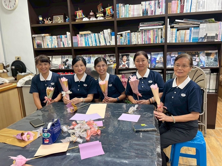 9月18日中午先行抵達慈中承擔敬師謝師茶會前置準備的工作人員,與同組的慈懿爸媽被分配到花藝區,準備桌花、花形拱門並佈置會場還有明天要給老師們的巧克力花160束等,經過大家同心協力完成。