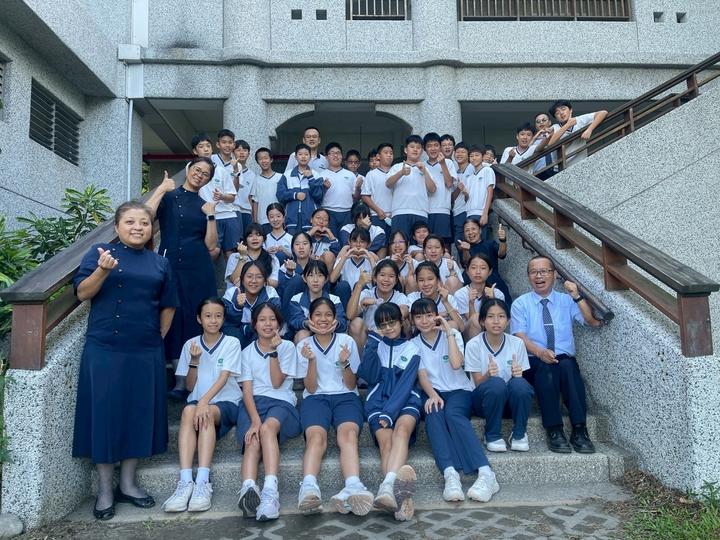 今天天氣很舒爽,全班一起到外面拍團體照,結束今天的活動。