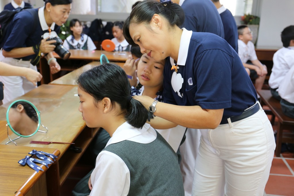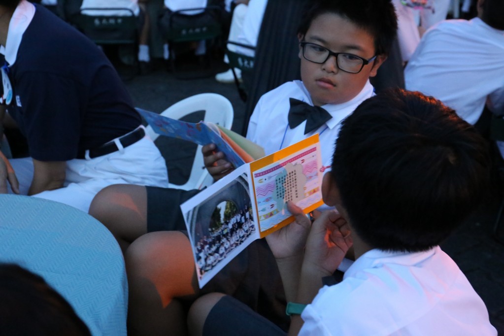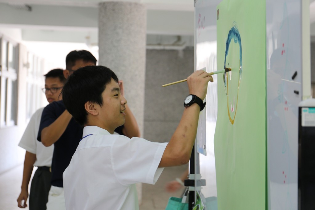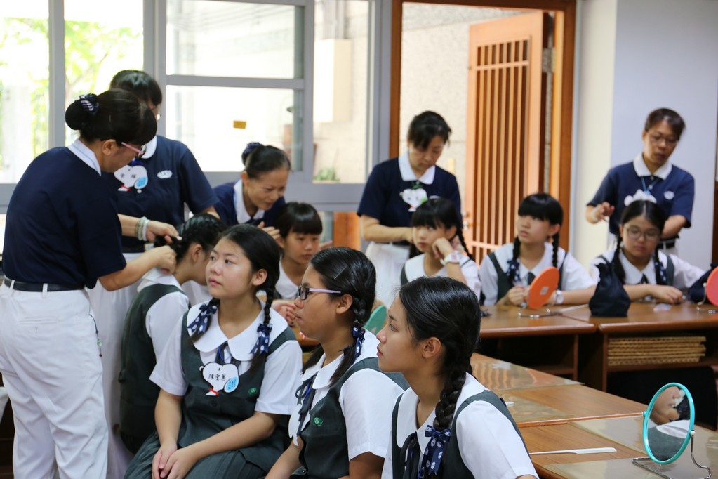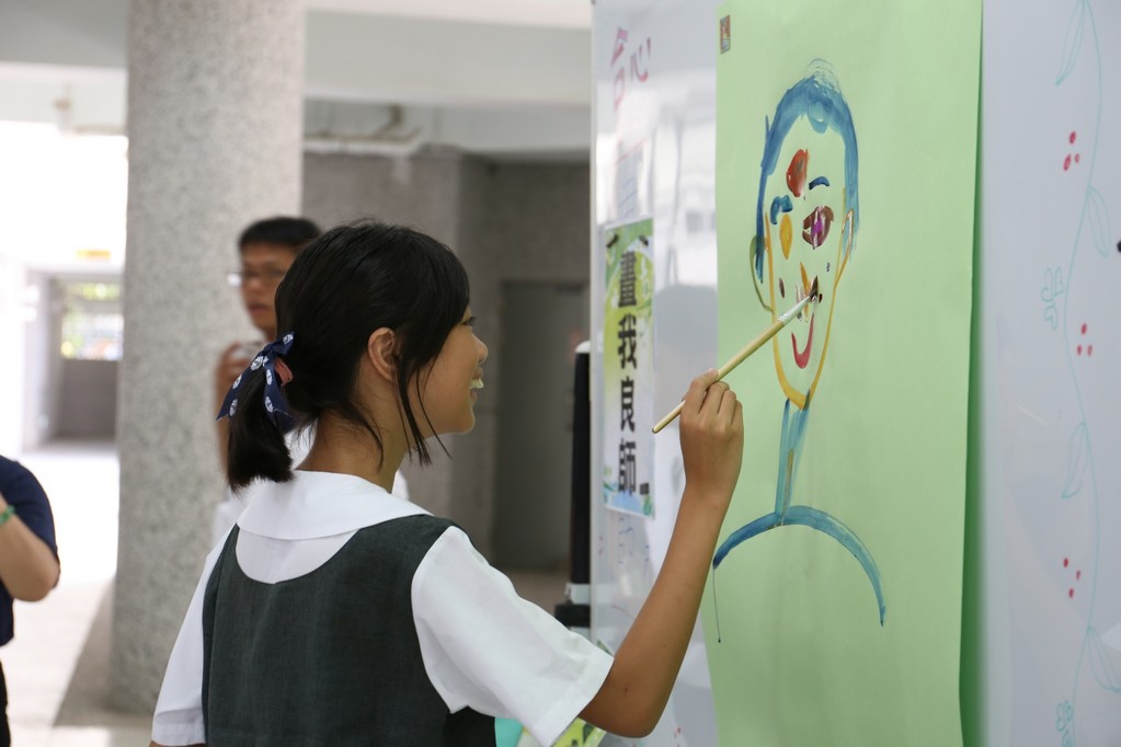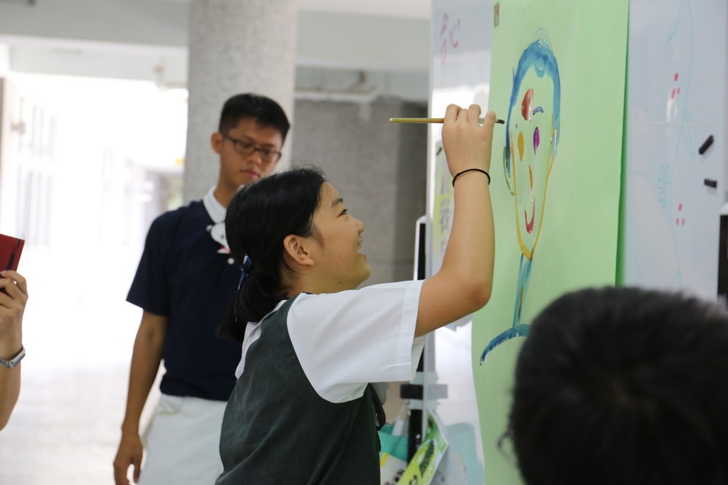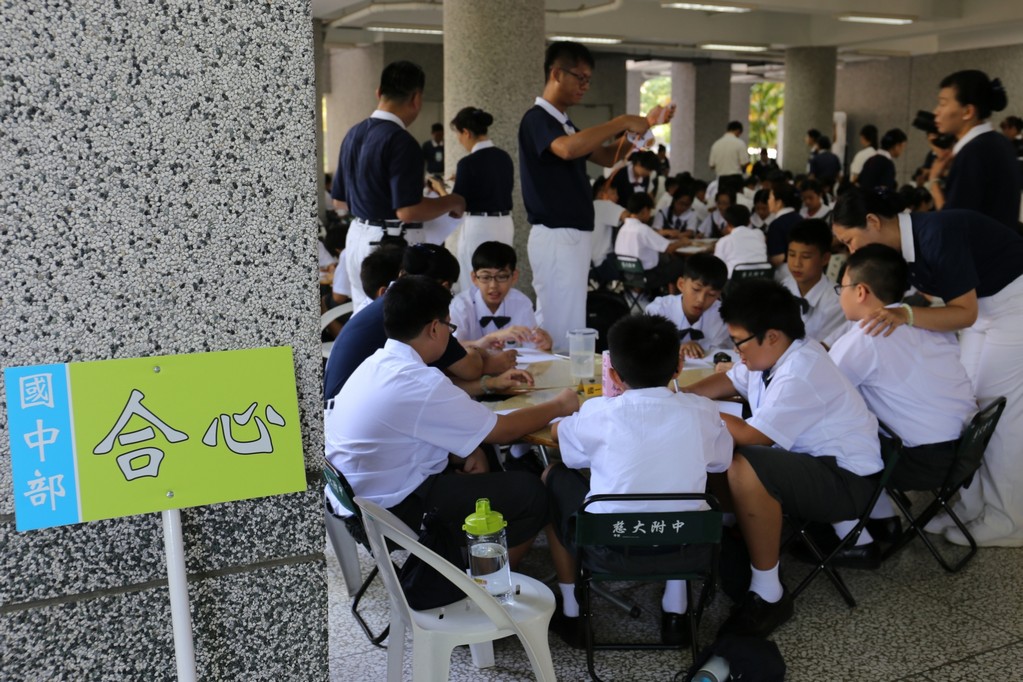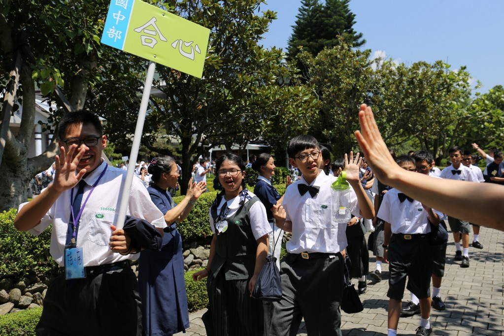 今年(2018)國一合心班大部份新生是在狗年出生,國一新生在7月28日的相見歡中,懿德媽媽爸爸們用心製作了可愛小狗圖形的姓名牌給新生們配帶。一方面方便讓大家初次見面時認識,而且也成為大家注目的焦點,一眼就可以認出是合心班。新訓闖關第一項活動是畫五指圖,讓國一同學寫出親朋好友、興趣及三年後對自己的期許,也在此時與懿德爸爸媽媽相認。