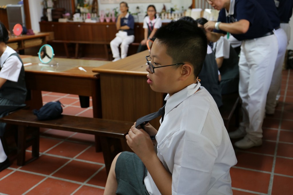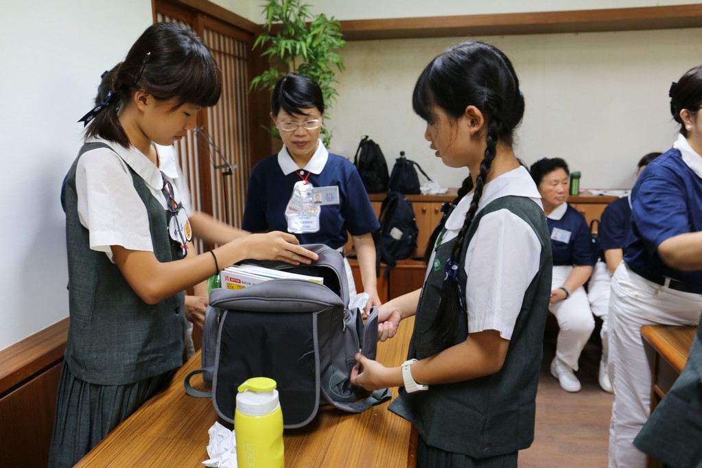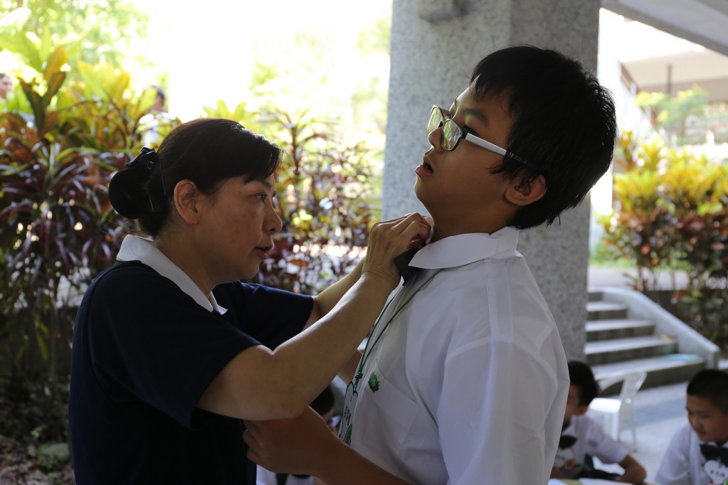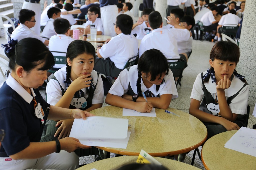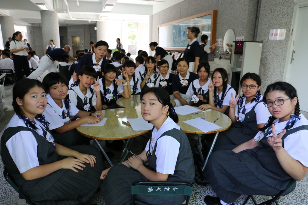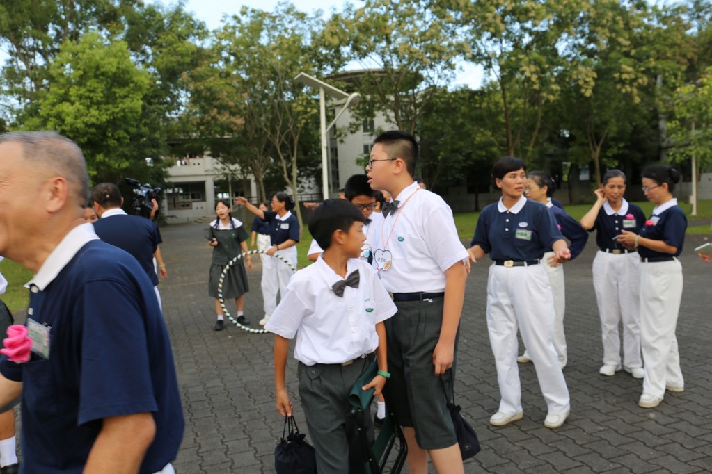 新生闖關是各班老師精心設計的分組活動,利用食、衣、住、行及環保回收各項主題寓教於樂,讓同學們藉由輕鬆又活潑的團康活動中認識了慈中在行、住、坐、卧禮儀及團體生活的各項規定,也在活動中認識了同學、師長和懿德爸爸媽媽產生互動。志傑爸爸的俏皮隊呼也緩和了同學與師長間拉進了彼此的距離。