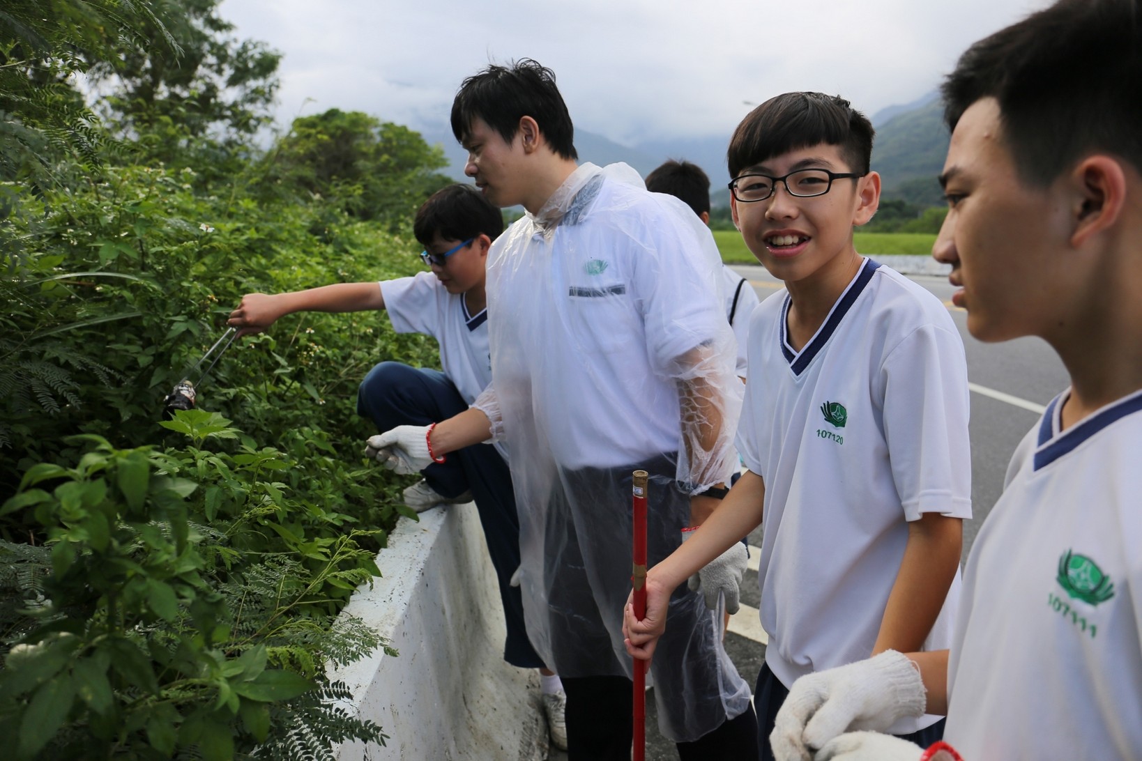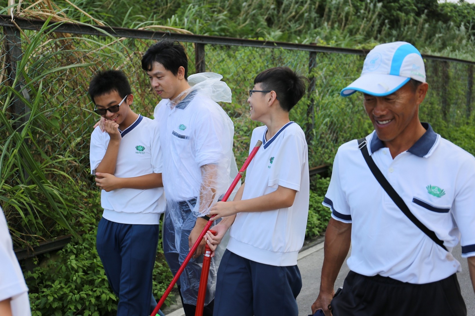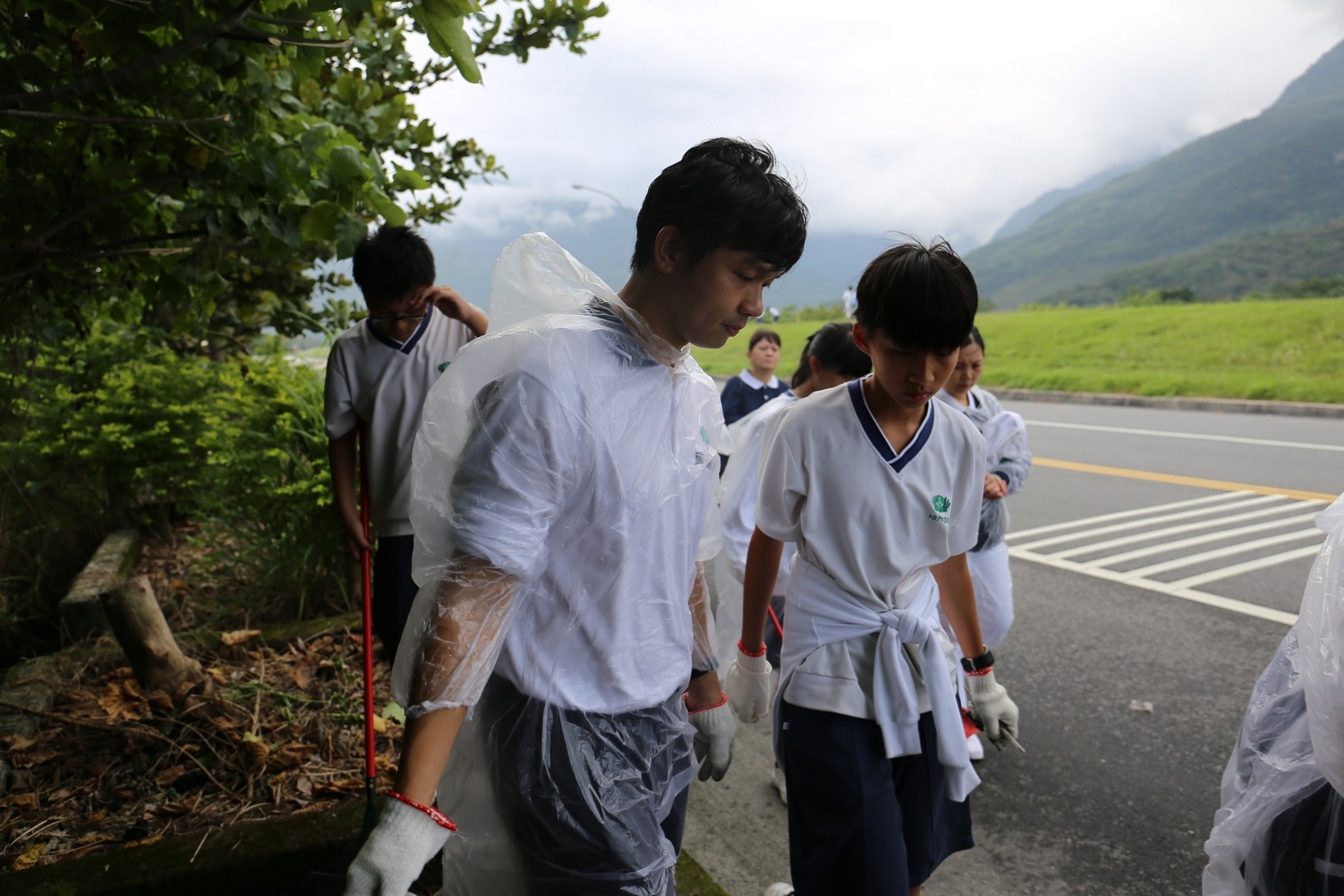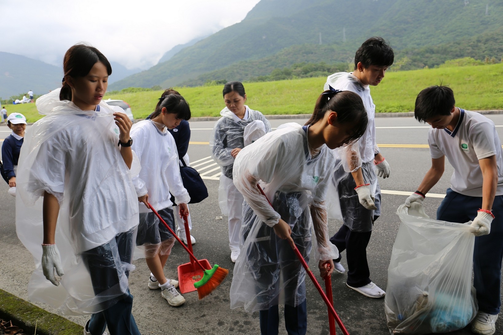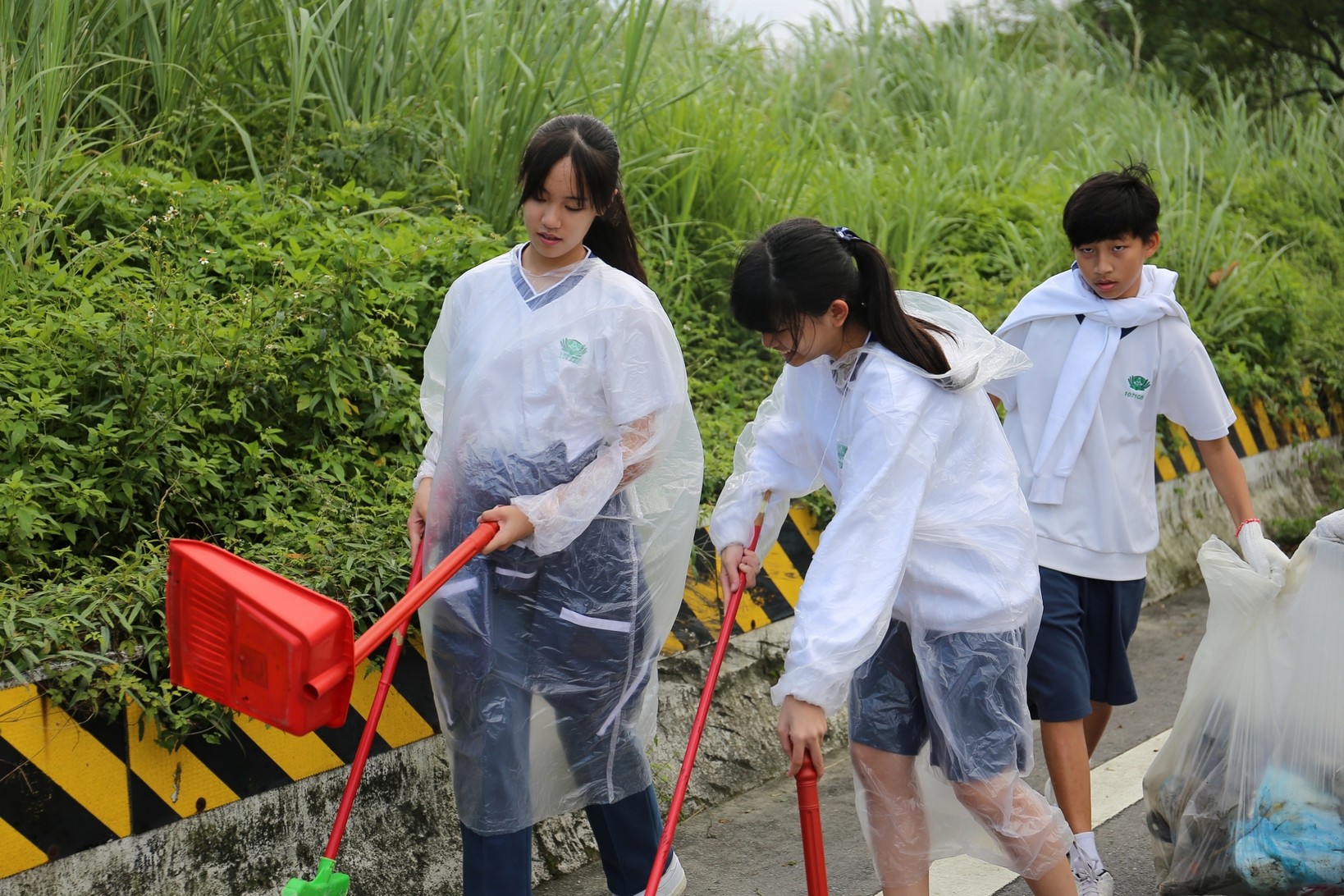 2018年十一月九日在慈中十九周年校慶的前夕,國一合心班的孩子們在家聚之後,戴起了手套,拿起了掃把、畚箕、夾子清掃工具,雖然剛開始天空下著毛毛雨,但在大為老師、昆霖老師及懿德爸爸媽媽帶領下,大家仍然一起走出校門沿著濟慈路撿拾路邊的垃圾。這一帶雖然沒有什麼住家,但是因為車道路邊仍然會有些路人隨手丟棄的垃圾,部份垃圾甚至在茂盛的草叢中,但是都被孩子們一一拾起集中由垃圾車收走。藉由這樣的活動讓孩子們瞭解利益人群可以由隨時隨地一念善心起。不是只打掃校內的清潔,也照護校園四周的環境,更進而傳遞淨化人們的心靈的訊息。