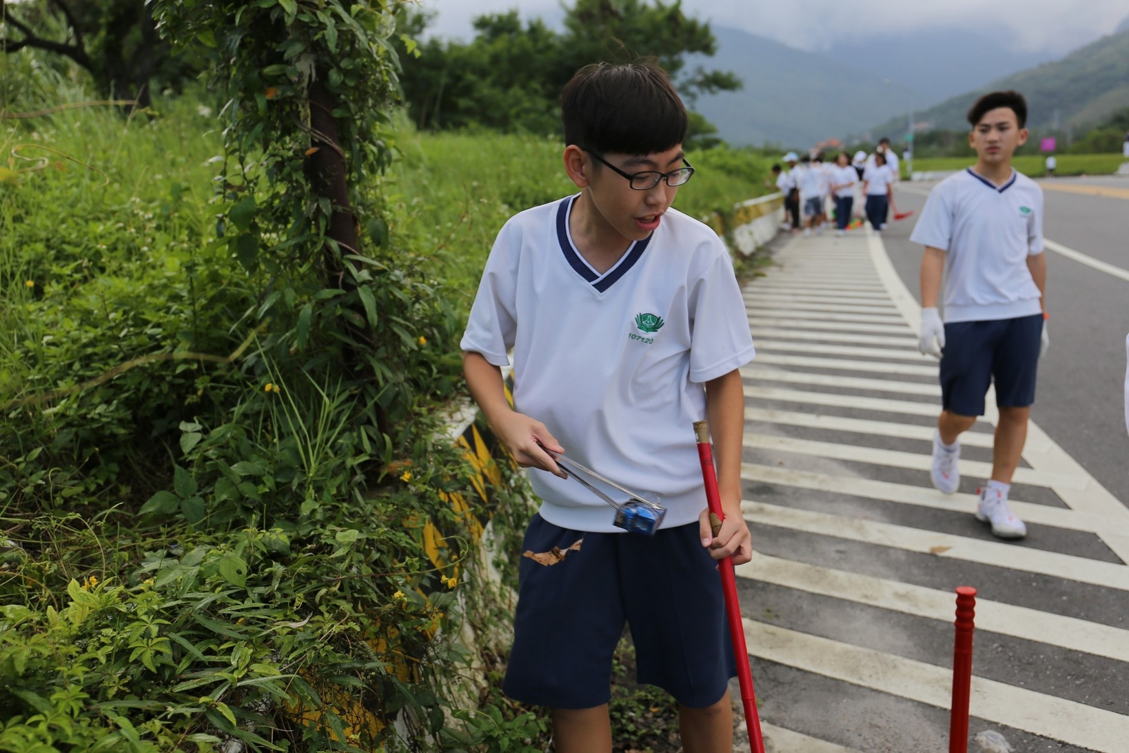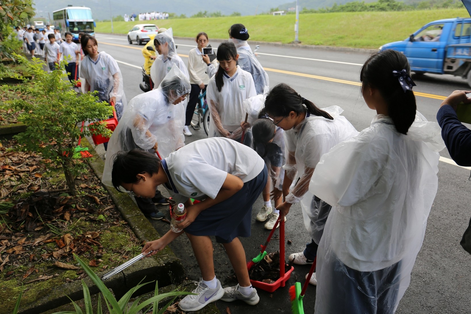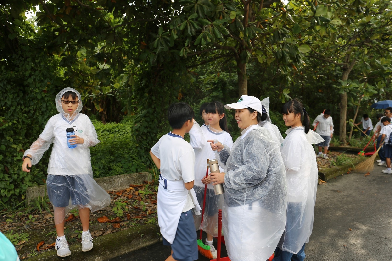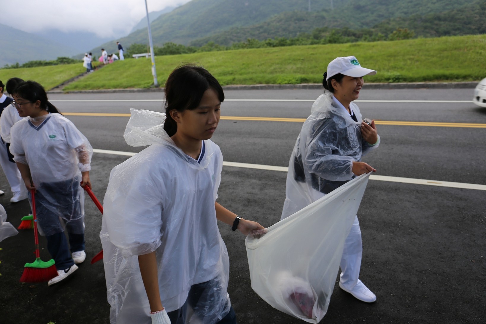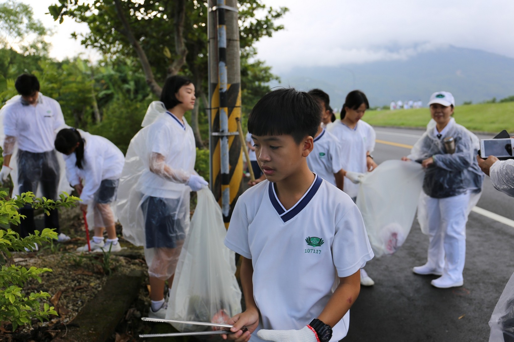 2018年十一月九日在慈中十九周年校慶的前夕,國一合心班的孩子們在家聚之後,戴起了手套,拿起了掃把、畚箕、夾子清掃工具,雖然剛開始天空下著毛毛雨,但在大為老師、昆霖老師及懿德爸爸媽媽帶領下,大家仍然一起走出校門沿著濟慈路撿拾路邊的垃圾。這一帶雖然沒有什麼住家,但是因為車道路邊仍然會有些路人隨手丟棄的垃圾,部份垃圾甚至在茂盛的草叢中,但是都被孩子們一一拾起集中由垃圾車收走。藉由這樣的活動讓孩子們瞭解利益人群可以由隨時隨地一念善心起。不是只打掃校內的清潔,也照護校園四周的環境,更進而傳遞淨化人們的心靈的訊息。