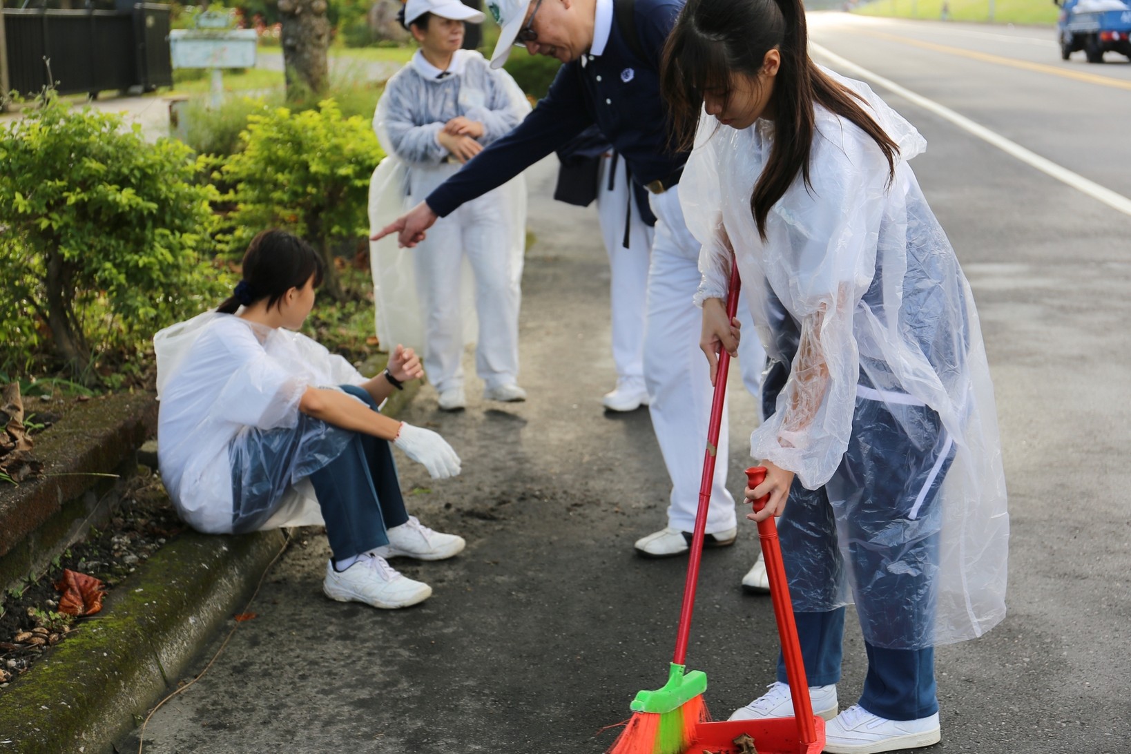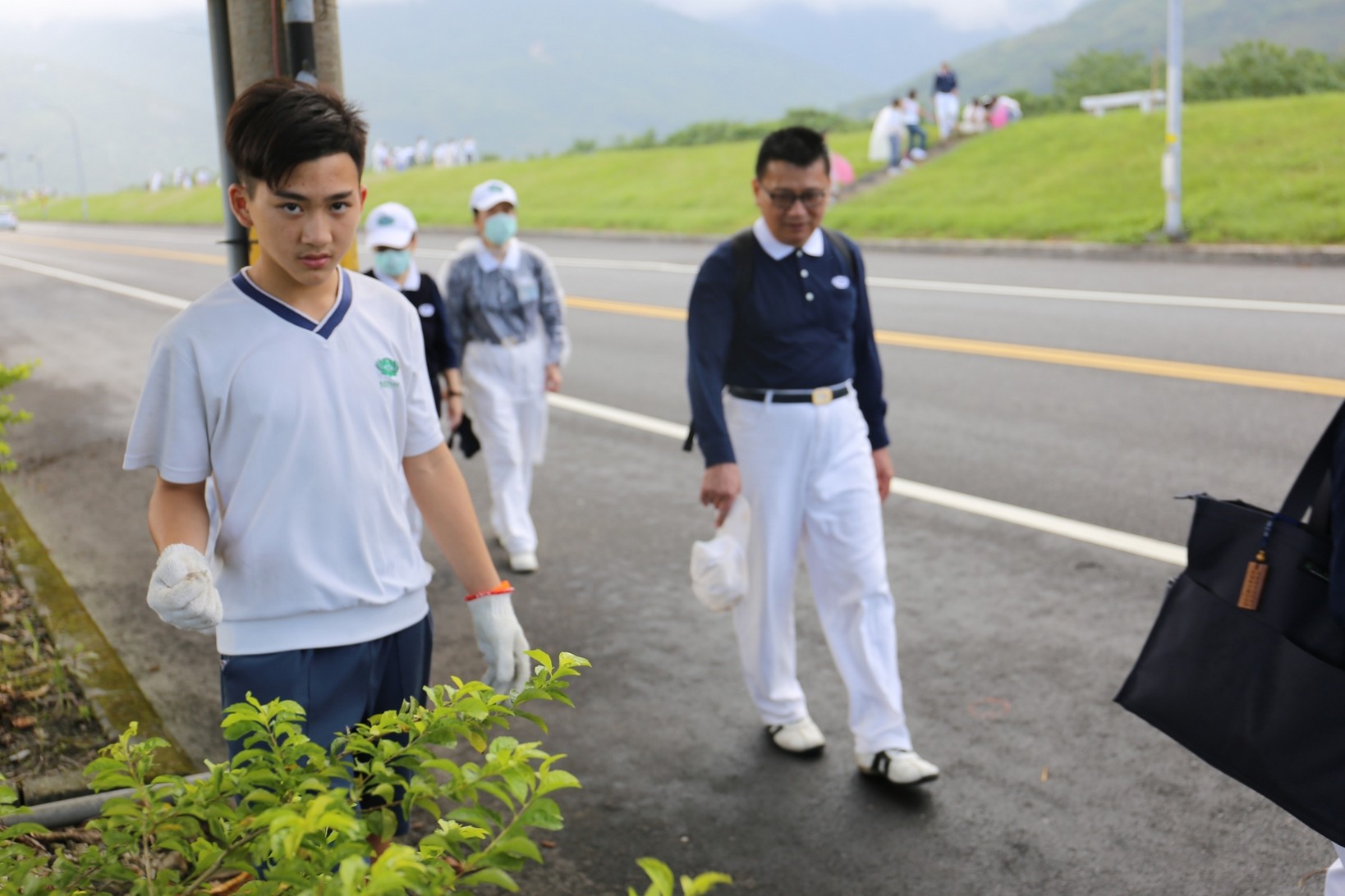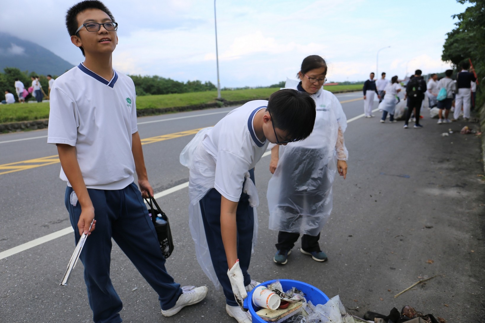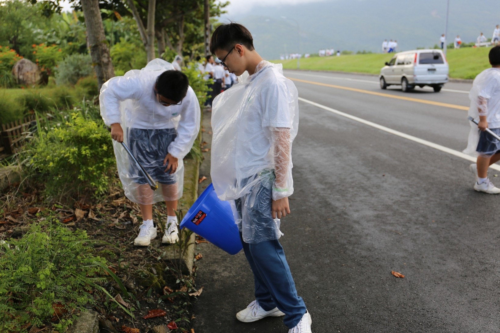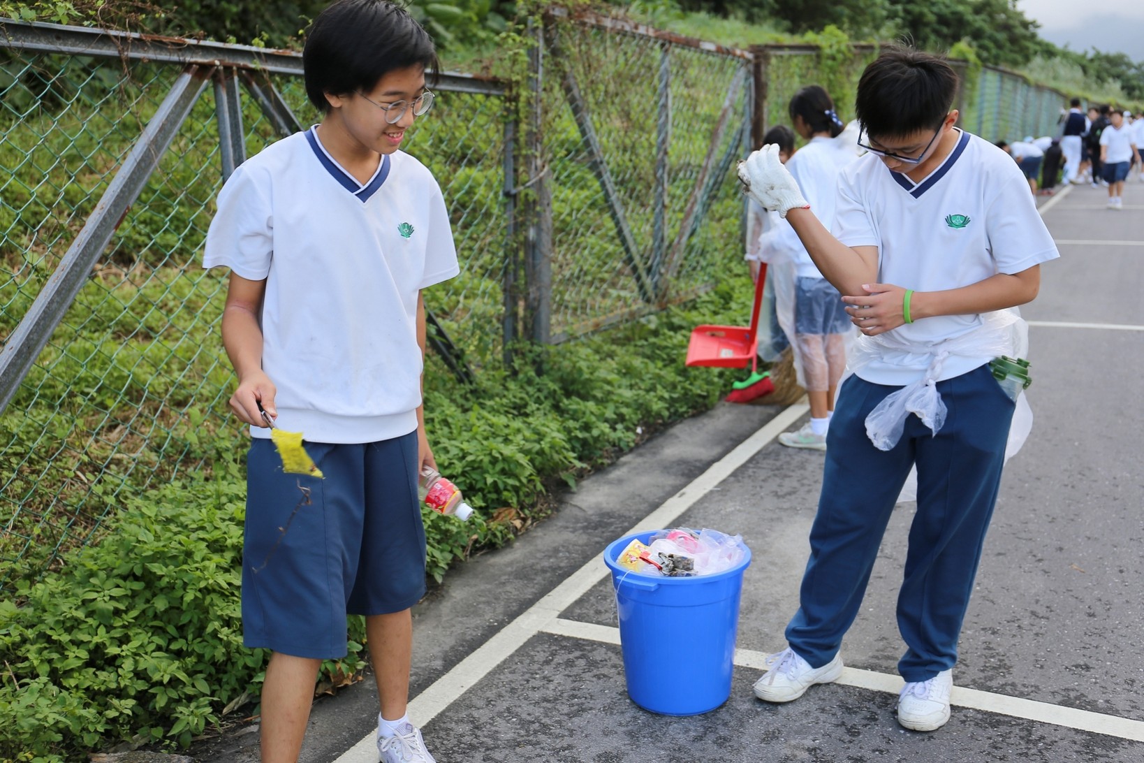 2018年十一月九日在慈中十九周年校慶的前夕,國一合心班的孩子們在家聚之後,戴起了手套,拿起了掃把、畚箕、夾子清掃工具,雖然剛開始天空下著毛毛雨,但在大為老師、昆霖老師及懿德爸爸媽媽帶領下,大家仍然一起走出校門沿著濟慈路撿拾路邊的垃圾。這一帶雖然沒有什麼住家,但是因為車道路邊仍然會有些路人隨手丟棄的垃圾,部份垃圾甚至在茂盛的草叢中,但是都被孩子們一一拾起集中由垃圾車收走。藉由這樣的活動讓孩子們瞭解利益人群可以由隨時隨地一念善心起。不是只打掃校內的清潔,也照護校園四周的環境,更進而傳遞淨化人們的心靈的訊息。