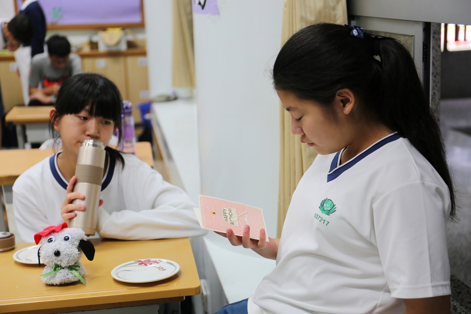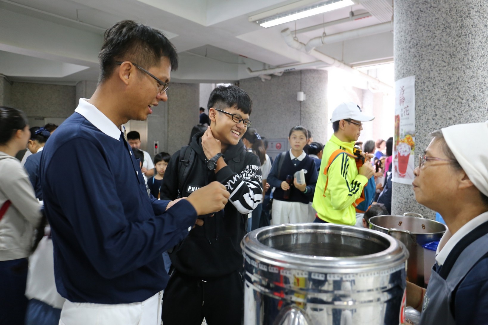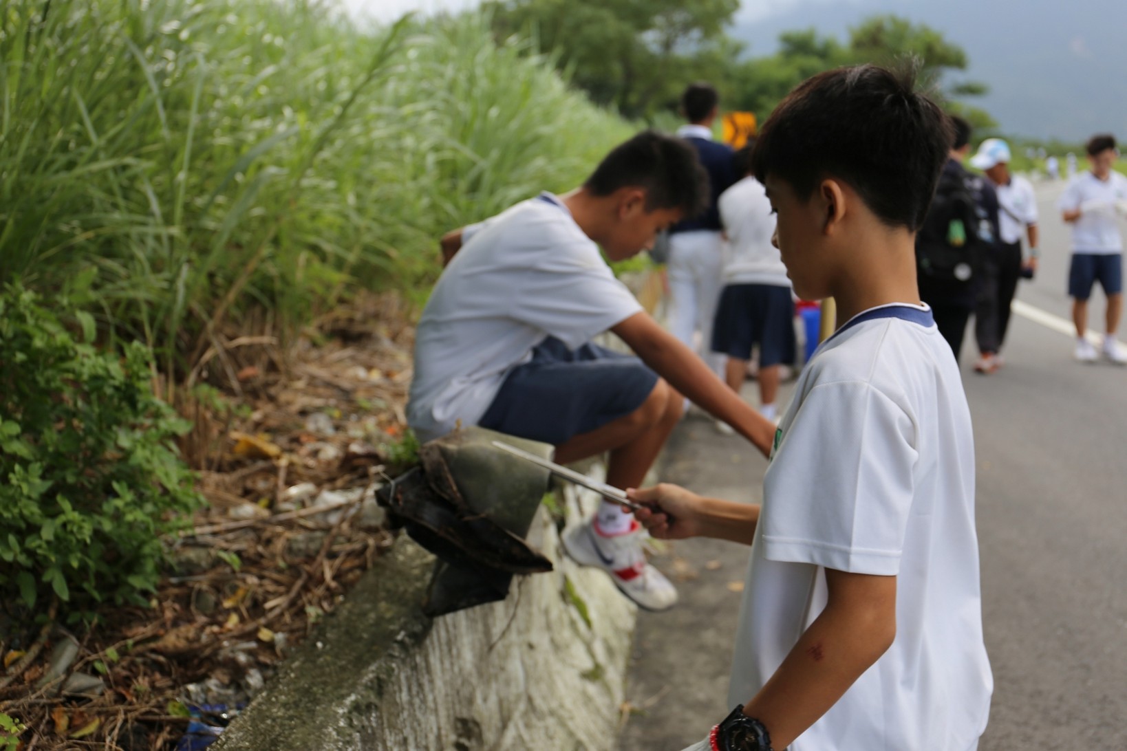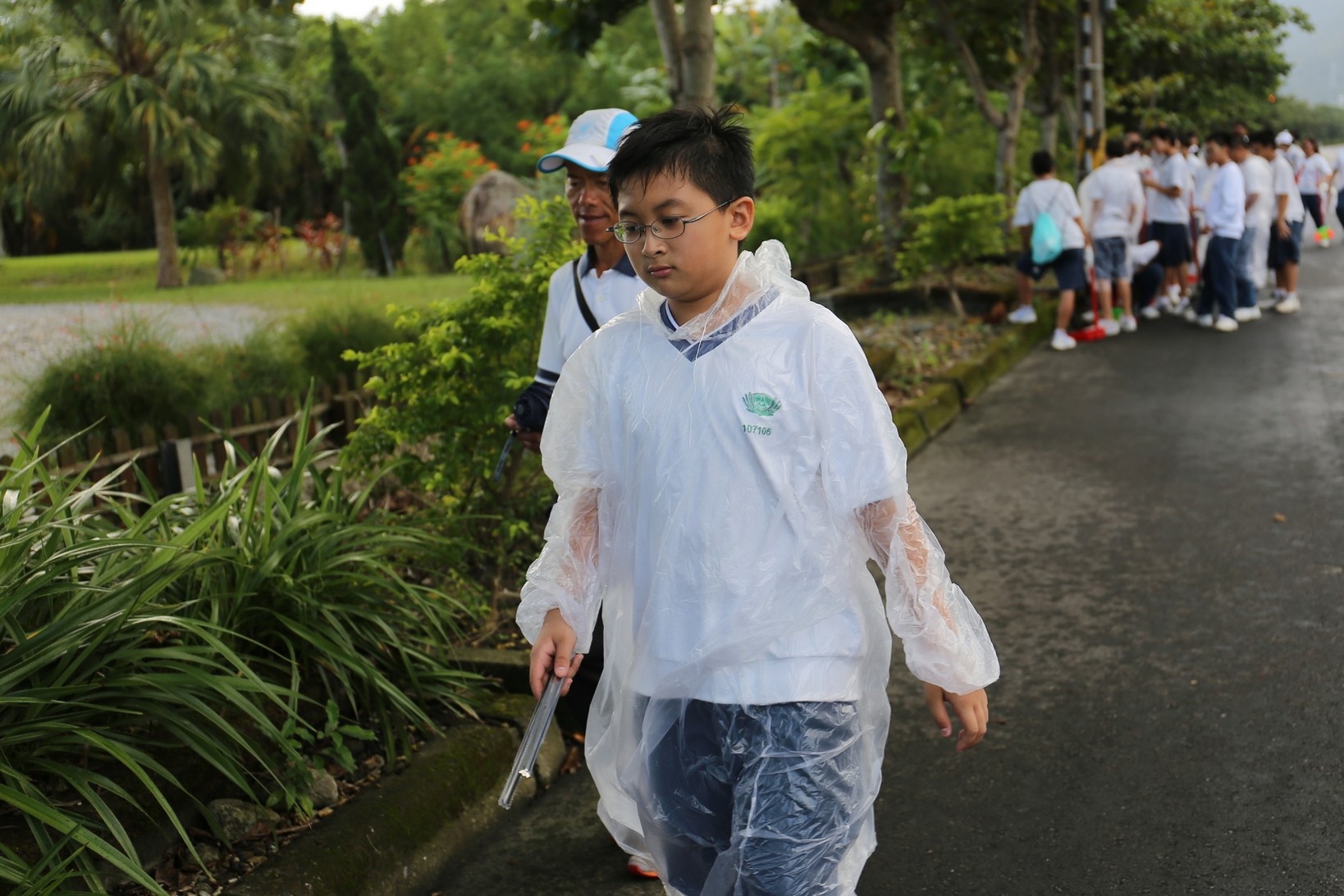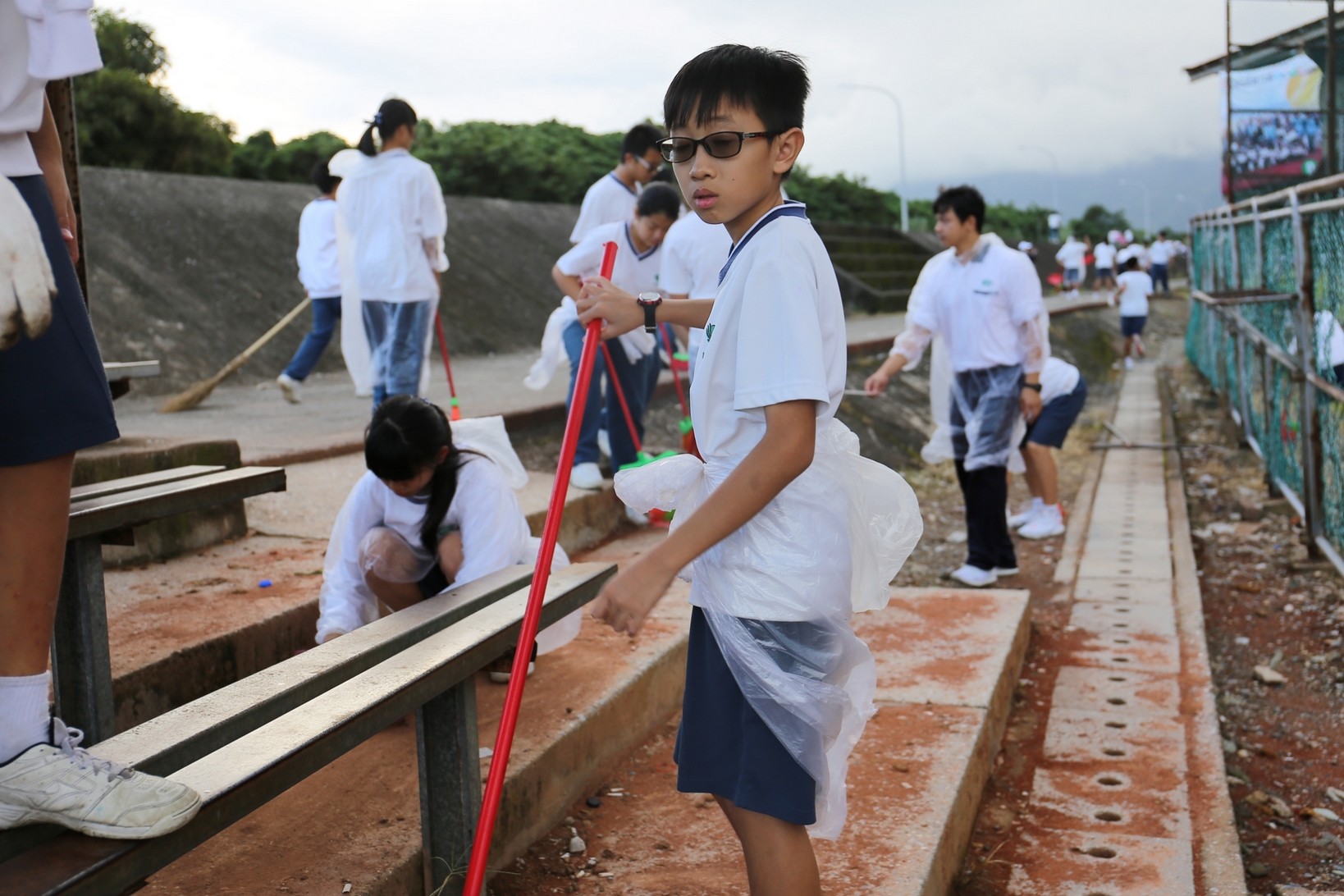 2018年十一月九日在慈中十九周年校慶的前夕,國一合心班的孩子們在家聚之後,戴起了手套,拿起了掃把、畚箕、夾子清掃工具,雖然剛開始天空下著毛毛雨,但在大為老師、昆霖老師及懿德爸爸媽媽帶領下,大家仍然一起走出校門沿著濟慈路撿拾路邊的垃圾。這一帶雖然沒有什麼住家,但是因為車道路邊仍然會有些路人隨手丟棄的垃圾,部份垃圾甚至在茂盛的草叢中,但是都被孩子們一一拾起集中由垃圾車收走。藉由這樣的活動讓孩子們瞭解利益人群可以由隨時隨地一念善心起。不是只打掃校內的清潔,也照護校園四周的環境,更進而傳遞淨化人們的心靈的訊息。