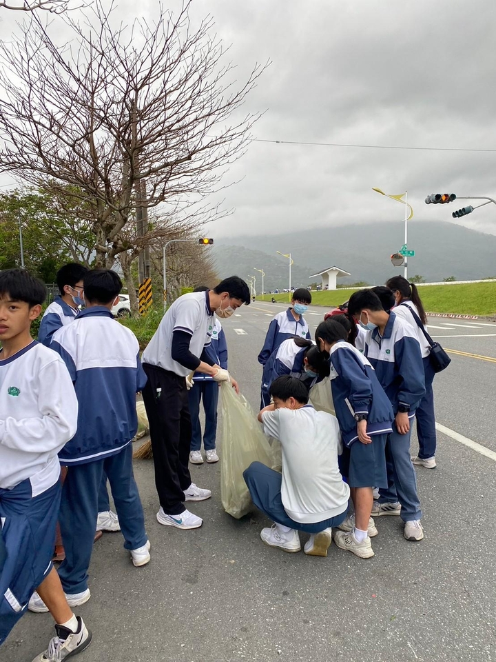 家聚過後,校長姐姐帶領著大家集結在操場,為慈中23手護洄瀾展開序幕,而後導師張德彥老師帶著大家前往濟慈路河堤區打掃,可愛的身影在草叢中、河堤邊認真的尋找垃圾,展現出「合心協力、長情大愛、共善前行」美善的畫面。