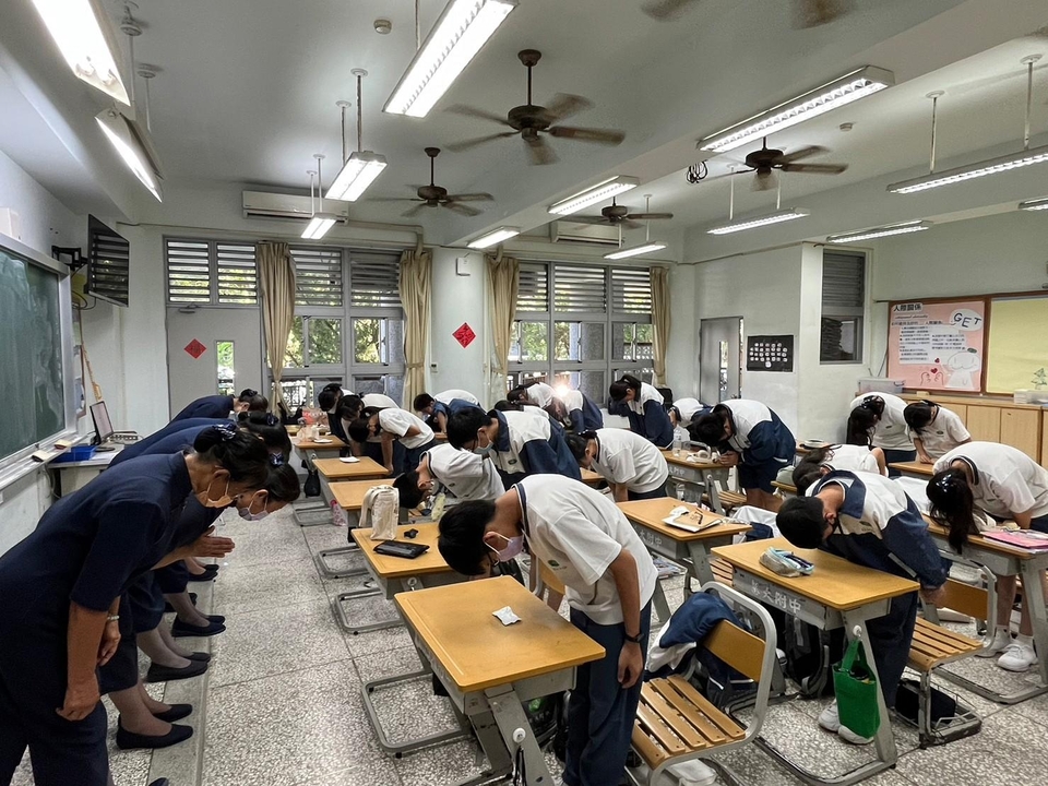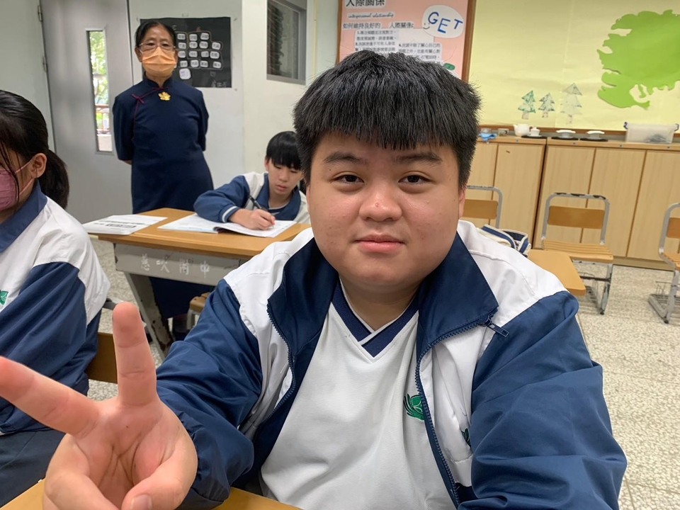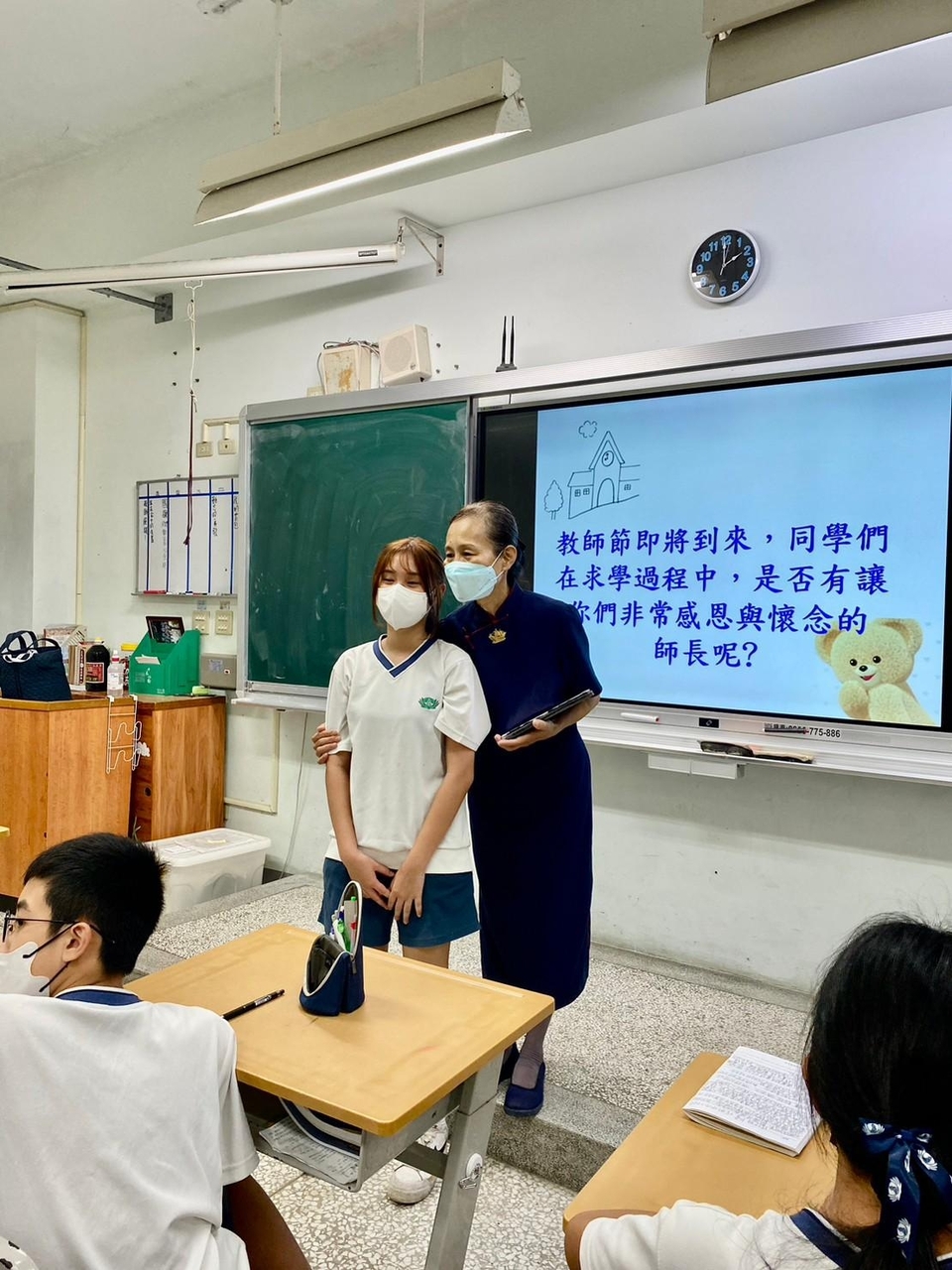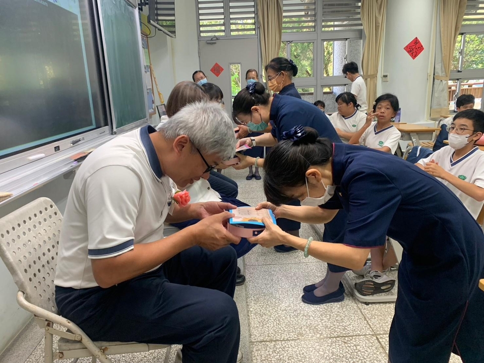 隨後就是大家最期待的教師節敬師活動,由班長和幹部們分頭邀約導師枋諴老師、數學課的彥男主任、英文課的譯云老師進班,端棗、素月和金諦媽媽幫老師們別上慈懿會特別準備的胸花後入座,欣賞班上手語小天使們,上台為老師帶來的〈師恩深一生深〉。